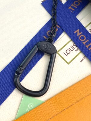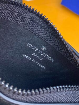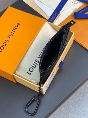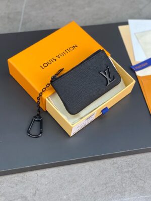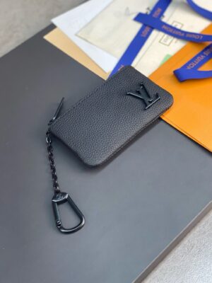 Compact and practical, the Key Pouch in elegant black Aerogram leather is ideal for men with classic tastes. The “LV” initials in matching black metal add a subtle signature touch. Perfect for carrying coins and cards as well as keys, it fits snugly in a pocket, or can be clipped to a larger bag with its handy chain and hook.