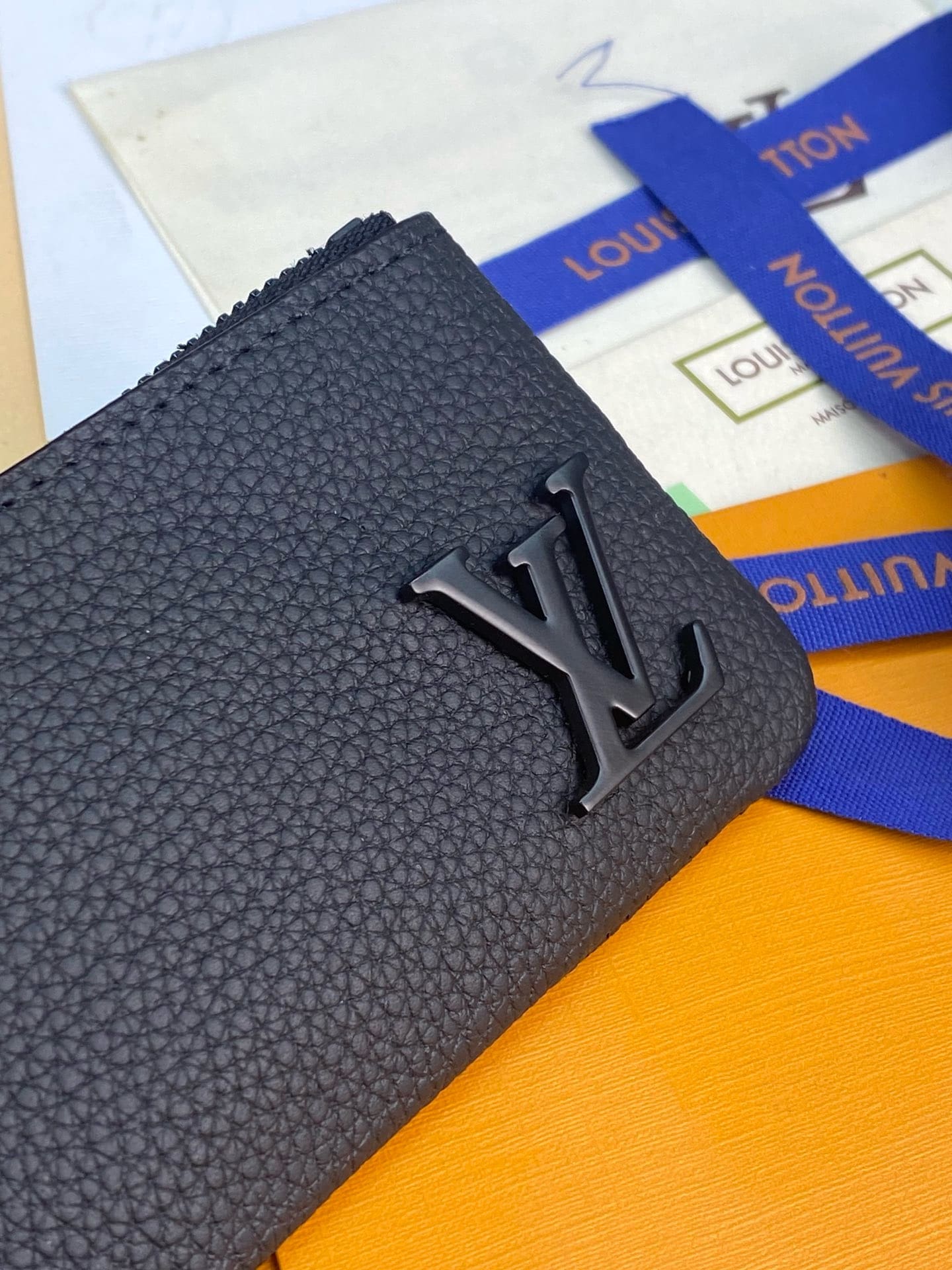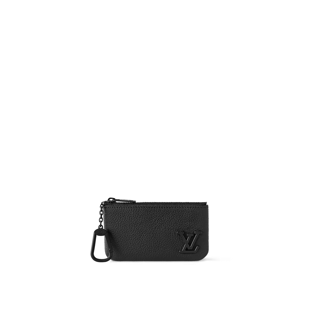 Compact and practical, the Key Pouch in elegant black Aerogram leather is ideal for men with classic tastes. The “LV” initials in matching black metal add a subtle signature touch. Perfect for carrying coins and cards as well as keys, it fits snugly in a pocket, or can be clipped to a larger bag with its handy chain and hook.