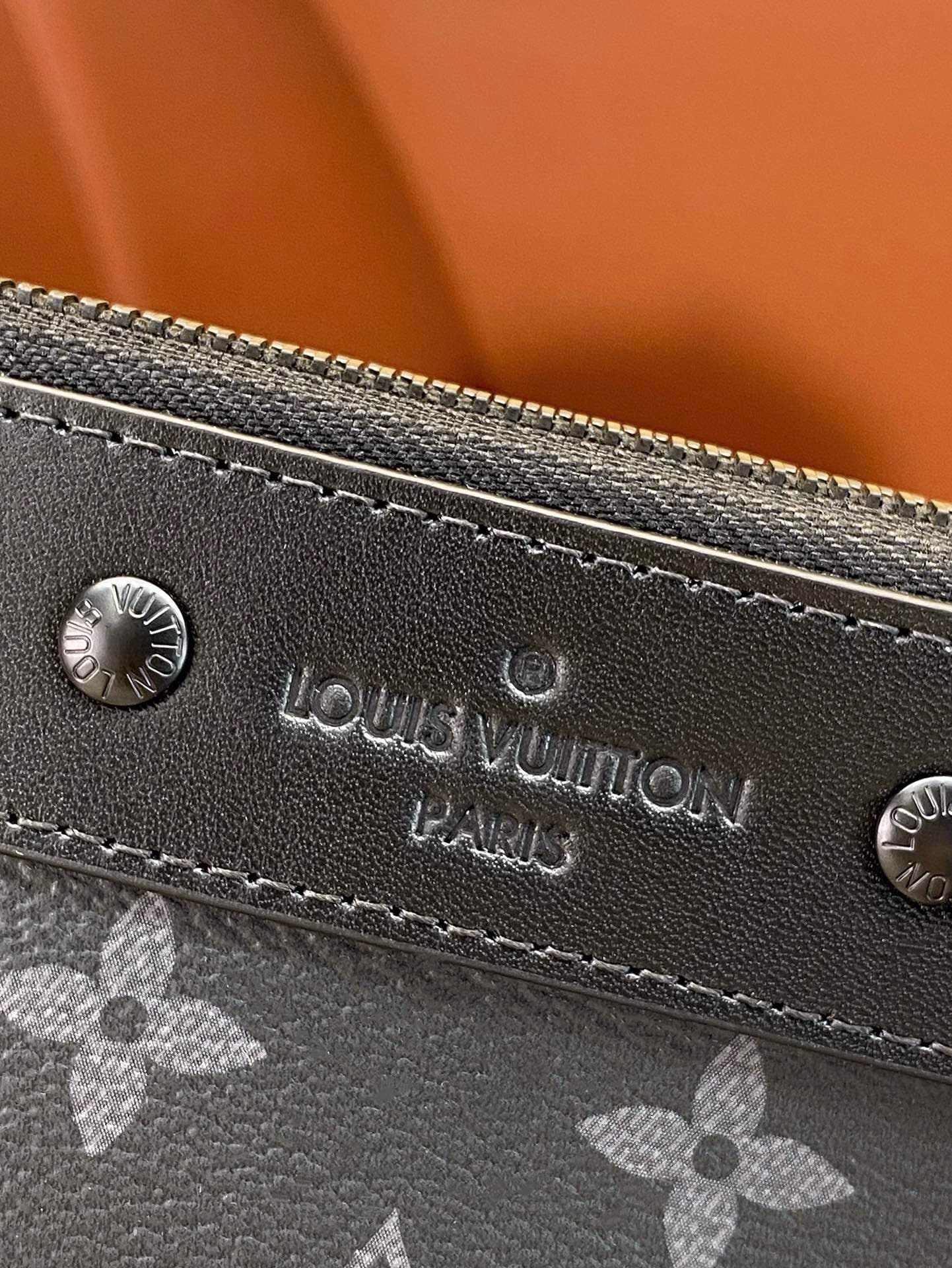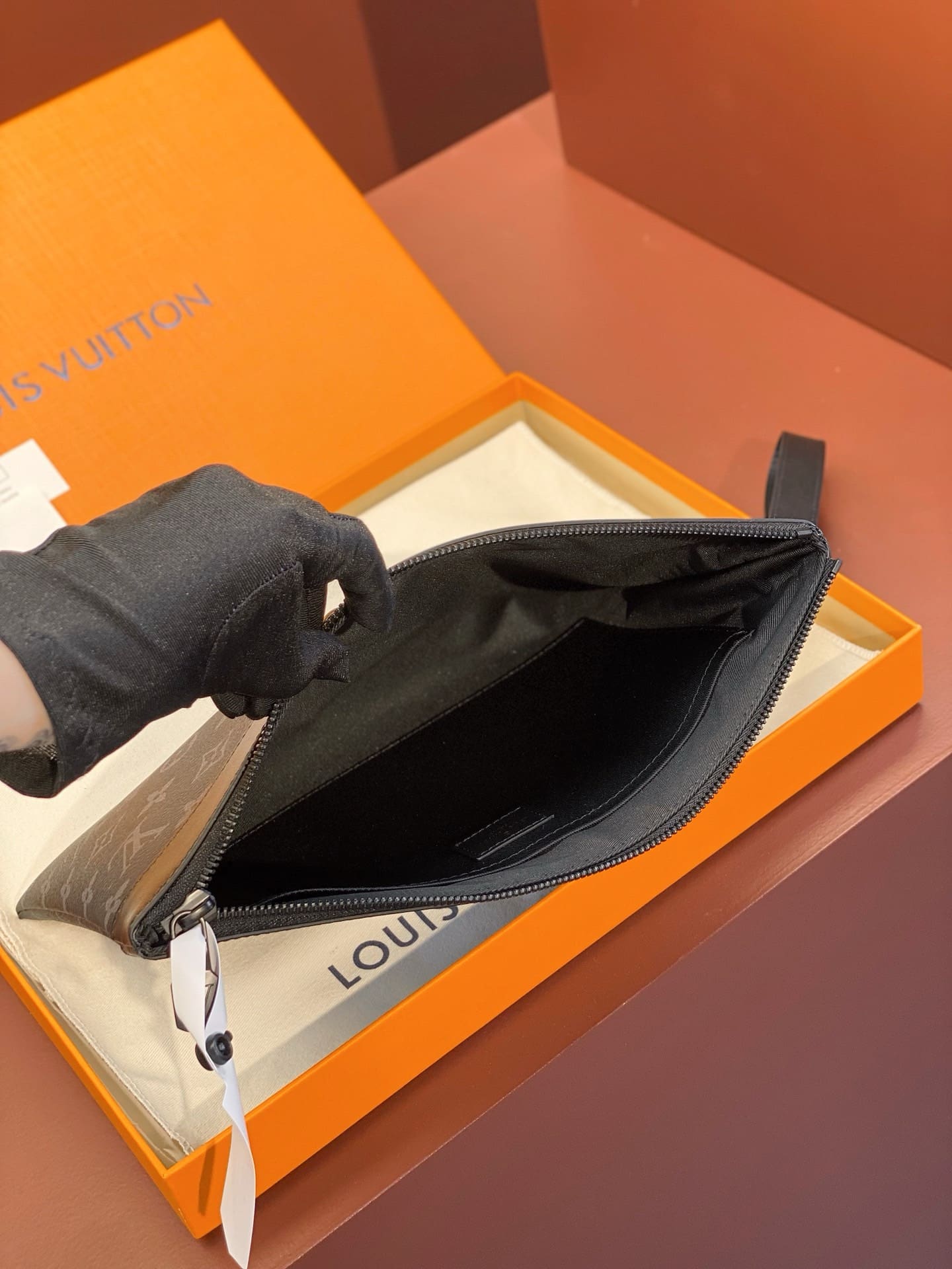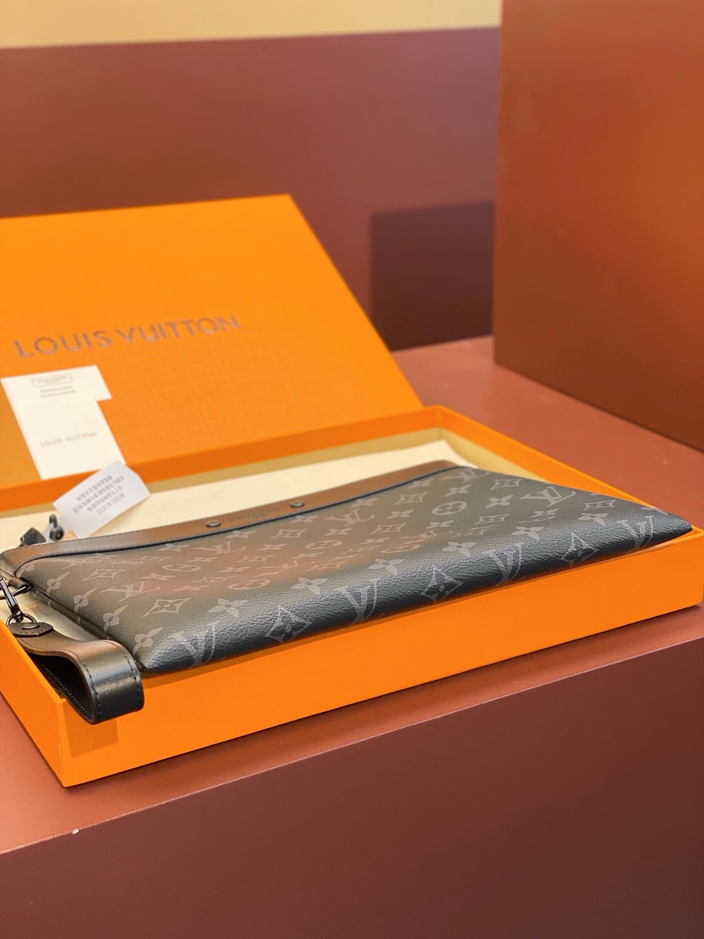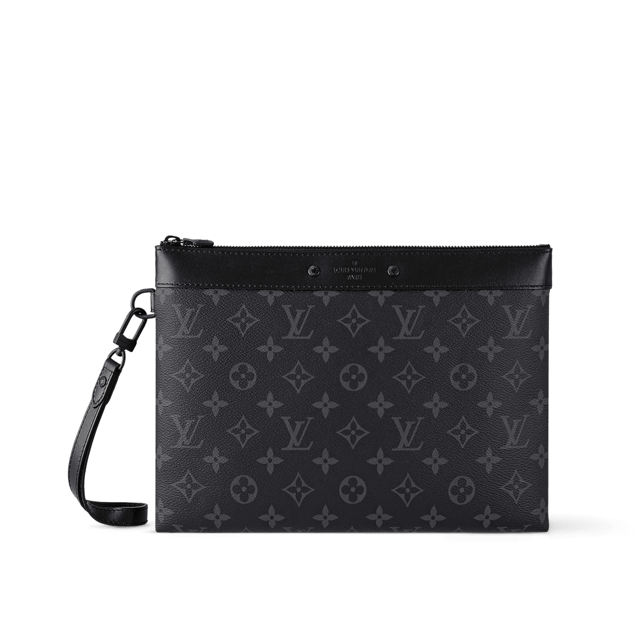 The new Pochette To-Go offers a stylish, sophisticated alternative to a conventional bag or attaché case. Crafted in Monogram Eclipse canvas, with a riveted label for a subtle signature touch, it’s roomy enough to hold papers, small digital devices and other personal essentials. And its removable wristband makes it a breeze to carry, ready to go anywhere.
