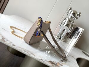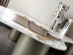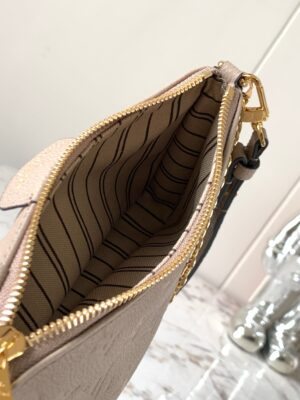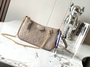 The Easy Pouch On Strap is made from Monogram Empreinte leather. The sleek design lends itself beautifully to the embossed Monogram pattern on the supple Empreinte leather. It can be worn on the shoulder, with the chain or the strap for a short carry, or cross-body as the leather strap is adjustable.