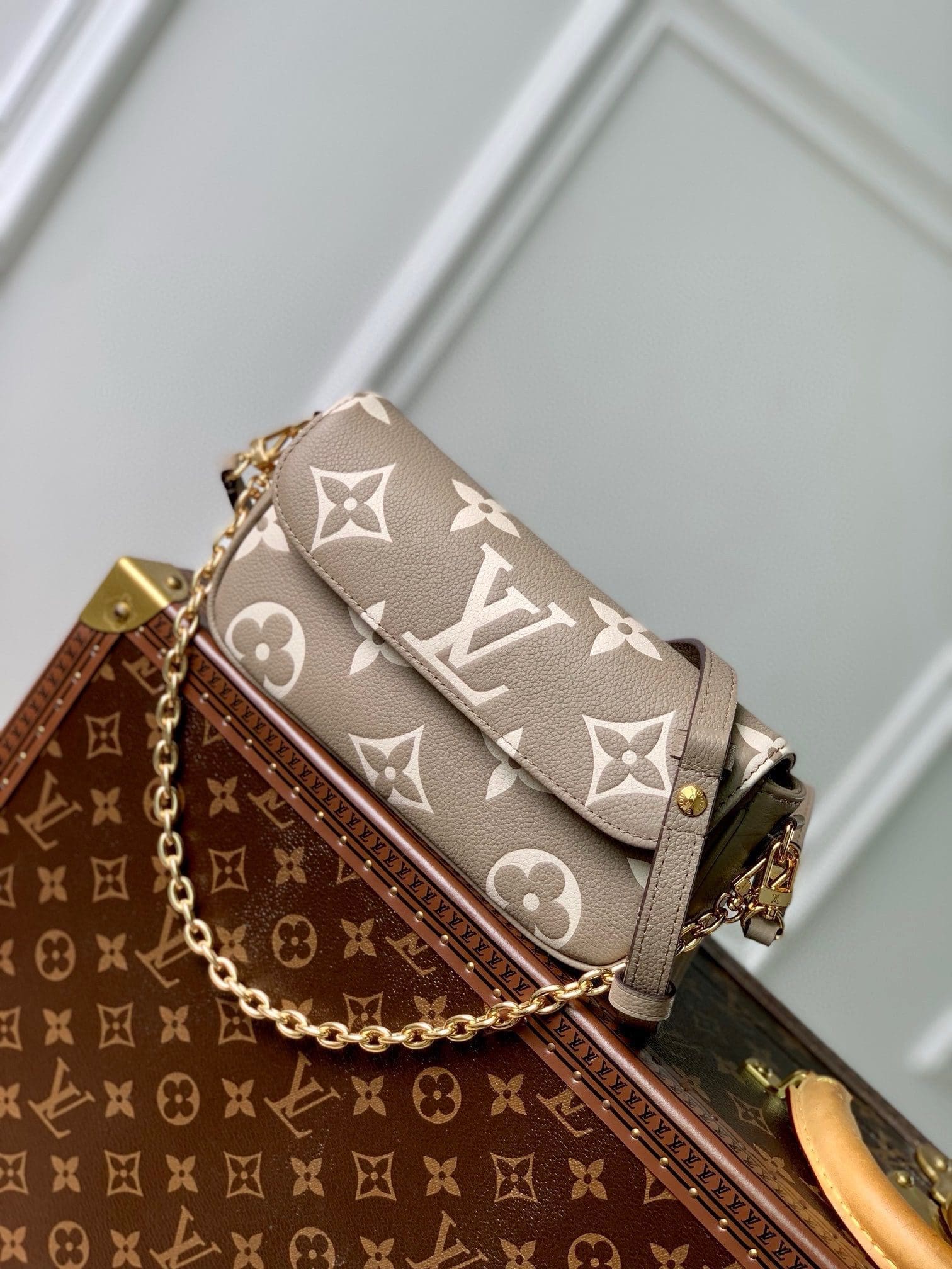 The Ivy wallet on chain is the perfect day-to-evening bag with space for all essentials. Crafted from bicolor grained Monogram Empreinte leather, which is embossed with an oversized version of the Monogram pattern, it has a soft, body-friendly shape and a flap with a magnetic closure. Its removable, jewel-like chain and removable, adjustable leather strap offer multiple carry options.