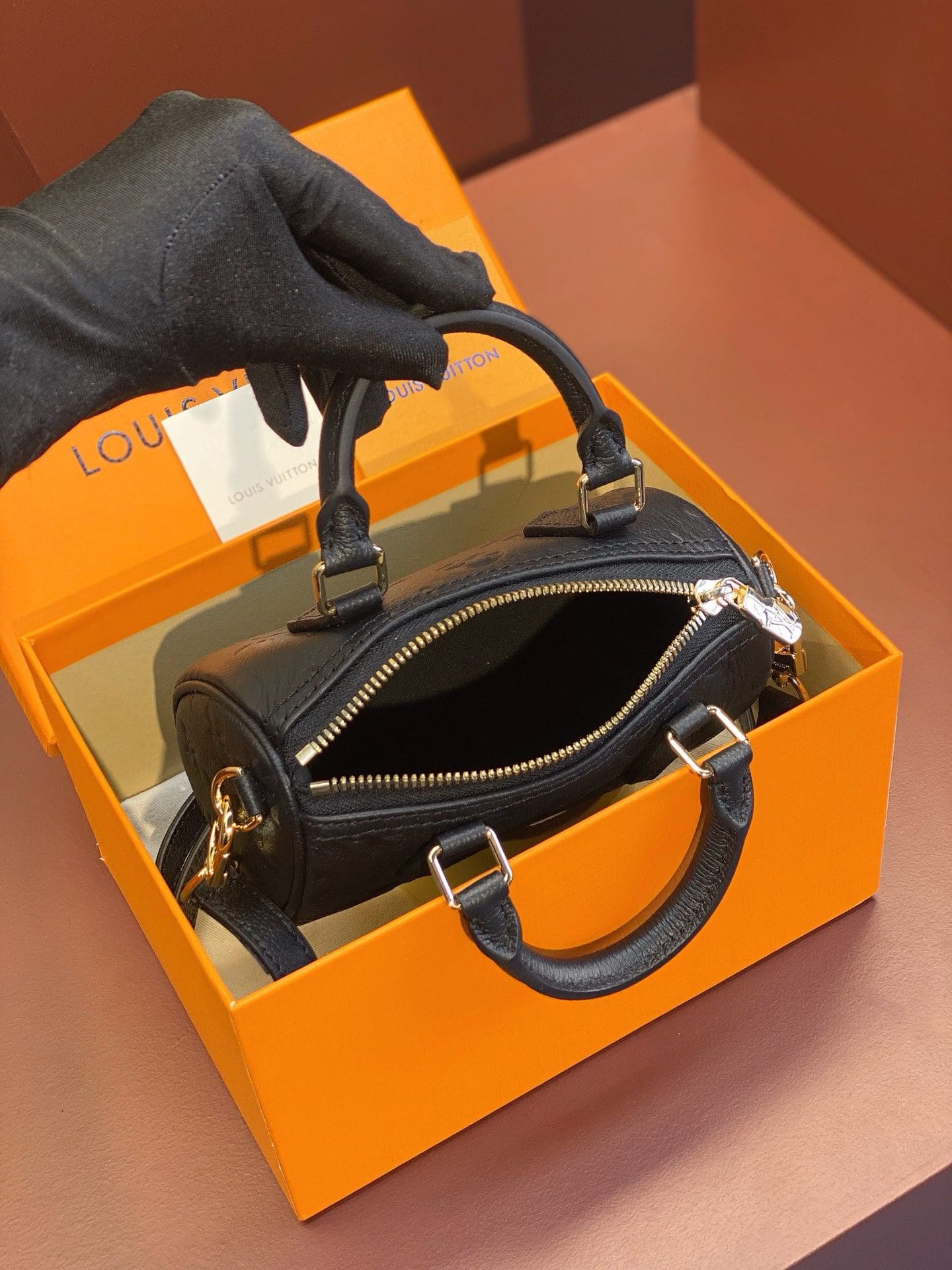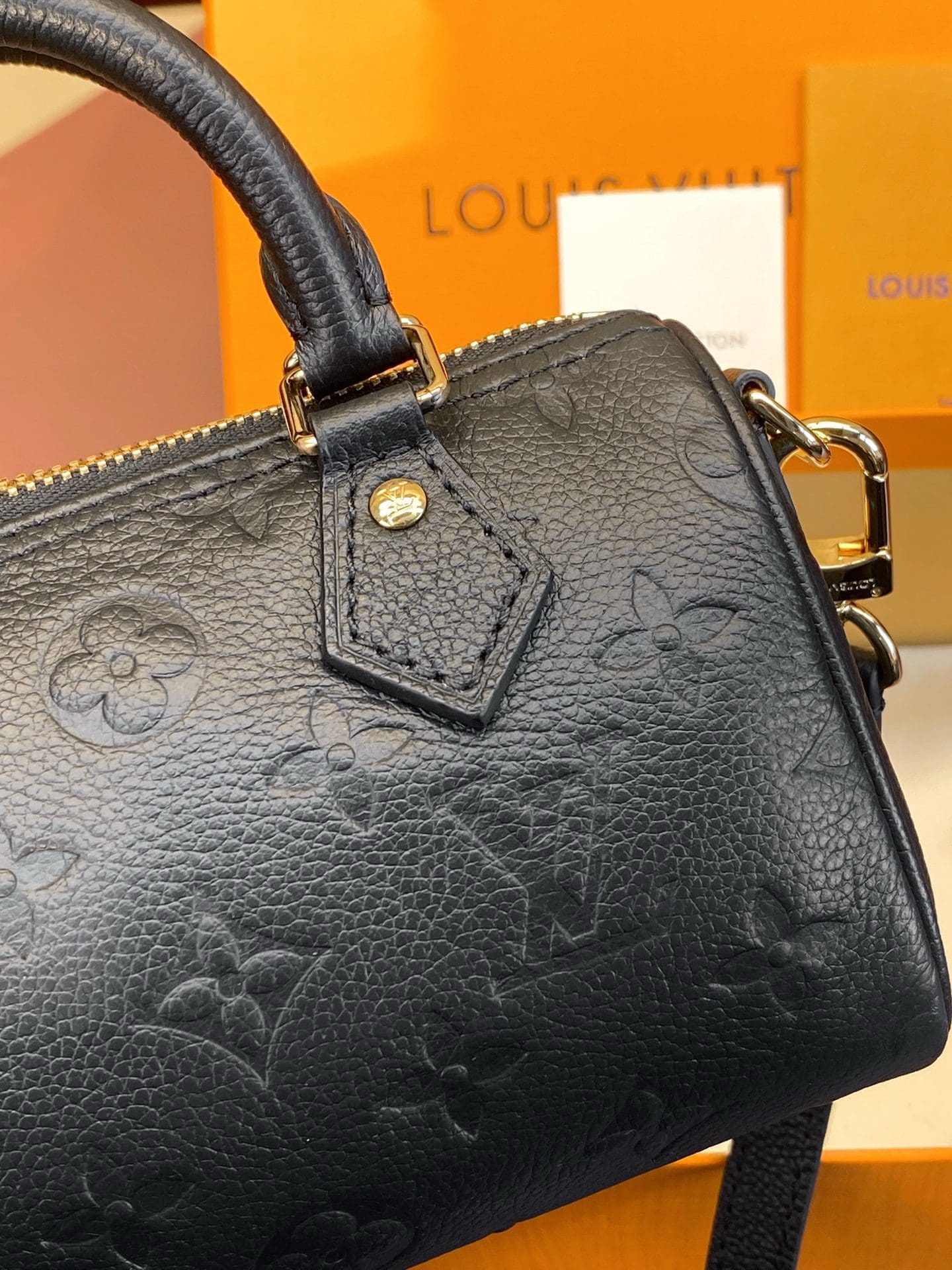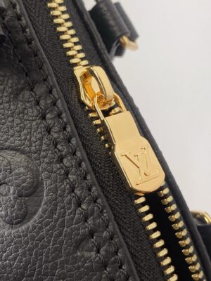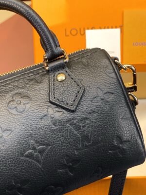 This Nano Speedy handbag condenses the classic silhouette of the Speedy handbag, using Monogram Empreinte grain leather embossed with the Monogram pattern to achieve a soft and close-fitting rounded shape. The top handle and removable and adjustable shoulder strap allow for a variety of carrying options.