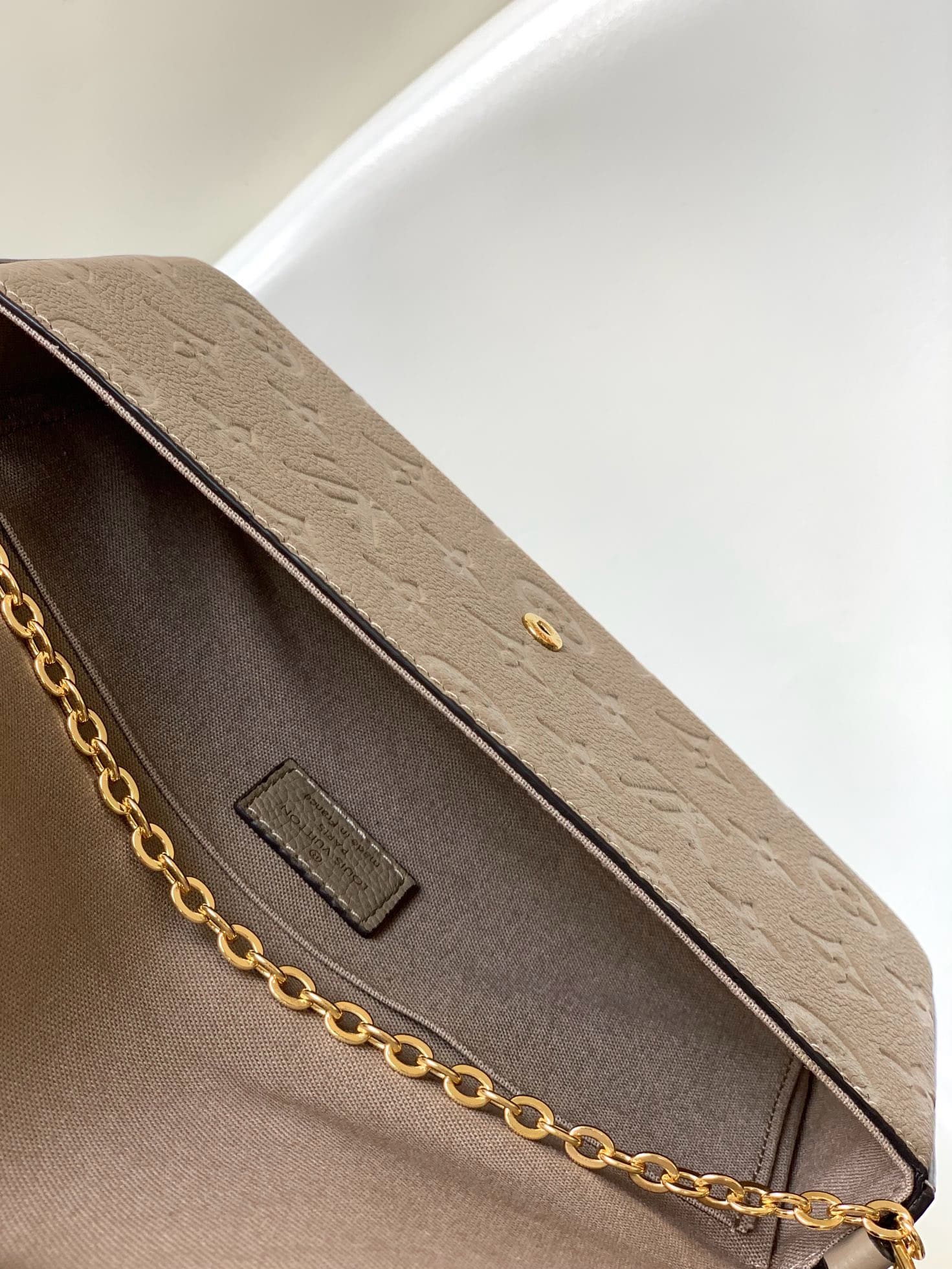 The Félicie Pochette is crafted from Monogram Empreinte leather, embossed with Louis Vuitton’s signature Monogram pattern. Designed to adapt to modern lifestyles, this envelope-style pouch contains a spacious compartment with two removable pockets: one zipped, one with card slots. It can also be carried in different ways thanks to a removable chain.