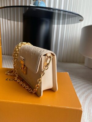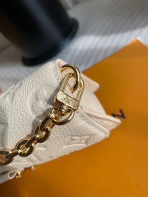 The Wallet On Chain Metis handbag is made of grained Monogram Empreinte leather with the brand’s Monogram pattern embossed on it. The appearance is unique, with a trapezoidal design and the front flap fixed with an S-lock, which is inherited from the classic Louis Vuitton suitcase. Detachable chain allows for cross-body wear.
