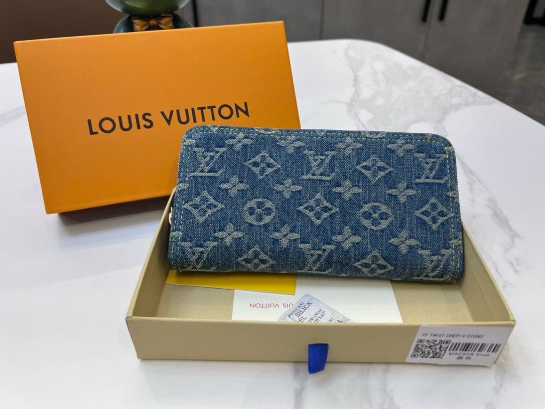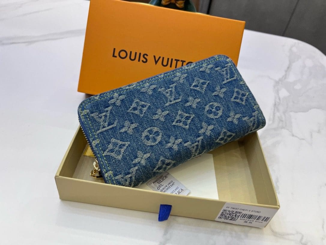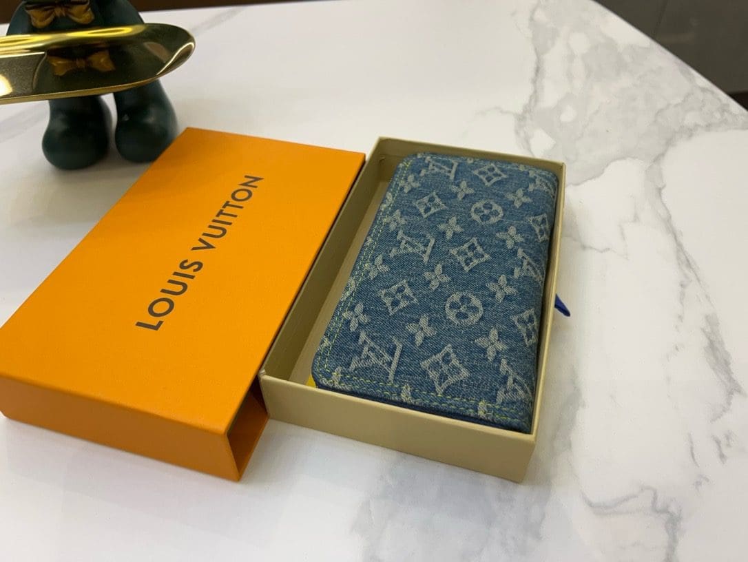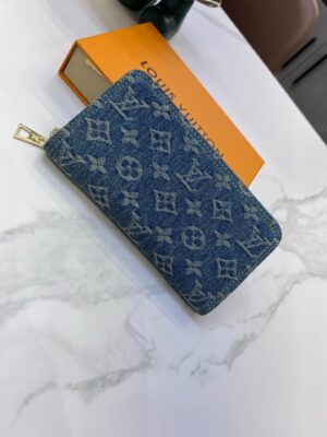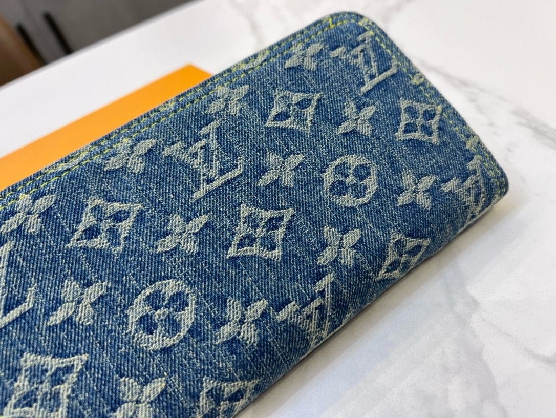 Fashioned from denim with the Monogram pattern woven into the cotton, this Zippy Wallet is stone washed, making each model unique. The House’s classic all-in-one wallet, the Zippy closes with a zipper and has a well-designed interior with three gusseted compartments as well as a zipped coin pocket, two flat pockets, and numerous card slots.