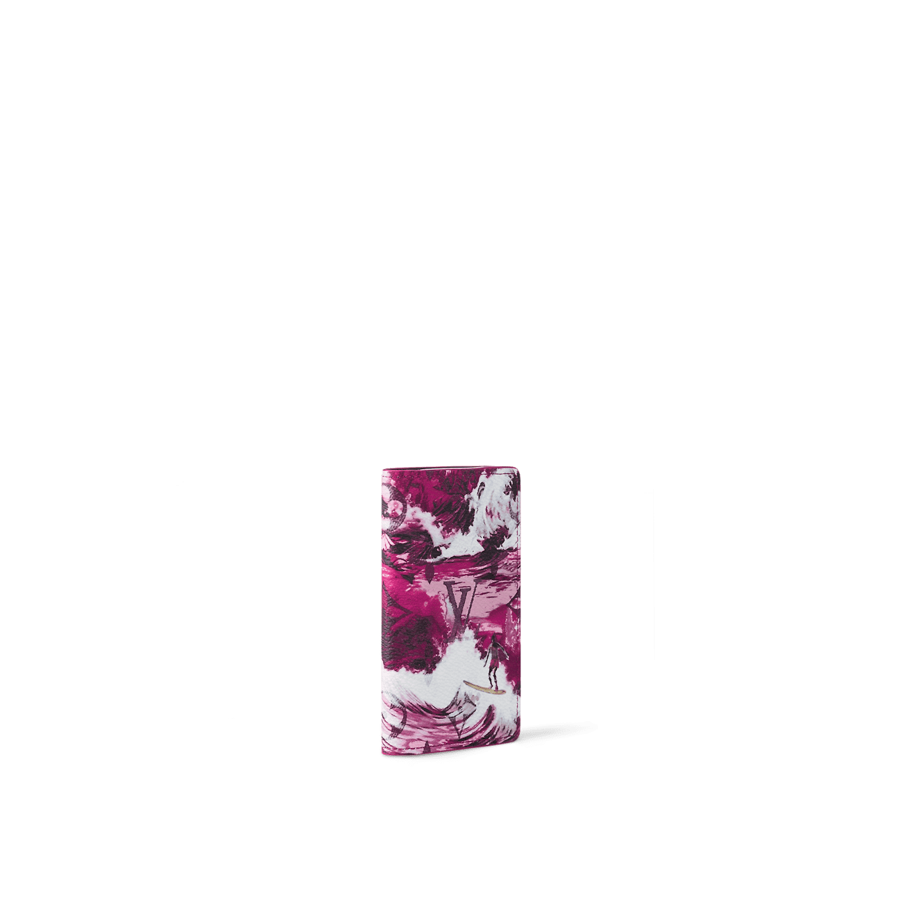 Creative Director Pharrell Williams brings his Surfin’ Monogram canvas to the Pocket Organizer for a full-on blast of summer energy. The intricately elaborated print, combining several layers of motifs, including surfers riding the waves, tropical vegetation, and the Monogram, vibrates with color and makes this classic wallet come alive.