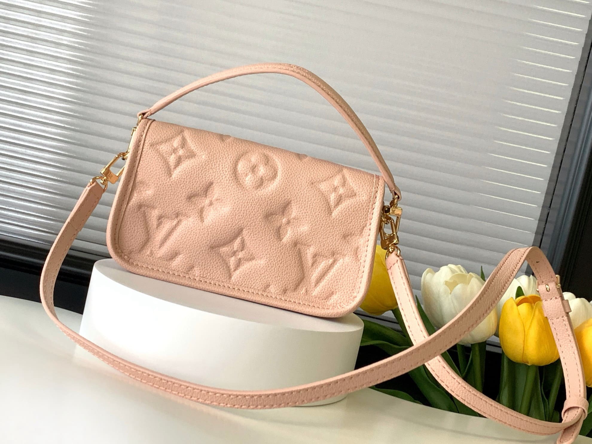 Crafted from Monogram Empreinte leather, the Nano Diane is a petite version of the Diane bag. Key details of the original design are meticulously replicated, including the rounded flap and belt-style closure. Large enough to hold a smartphone and other essentials, this is an ideal day-to-evening style whose removable handle and removable, adjustable strap offer great versatility.