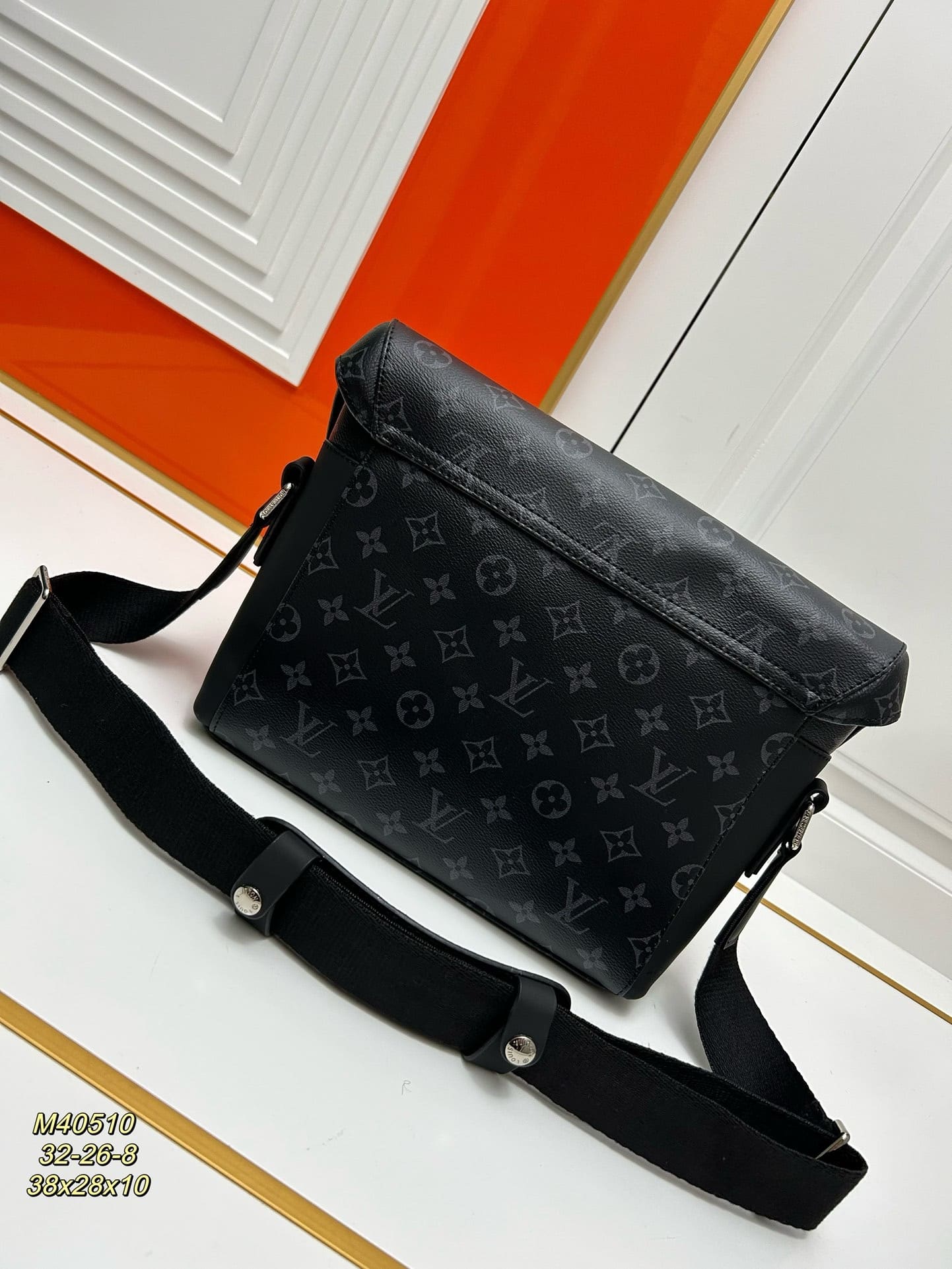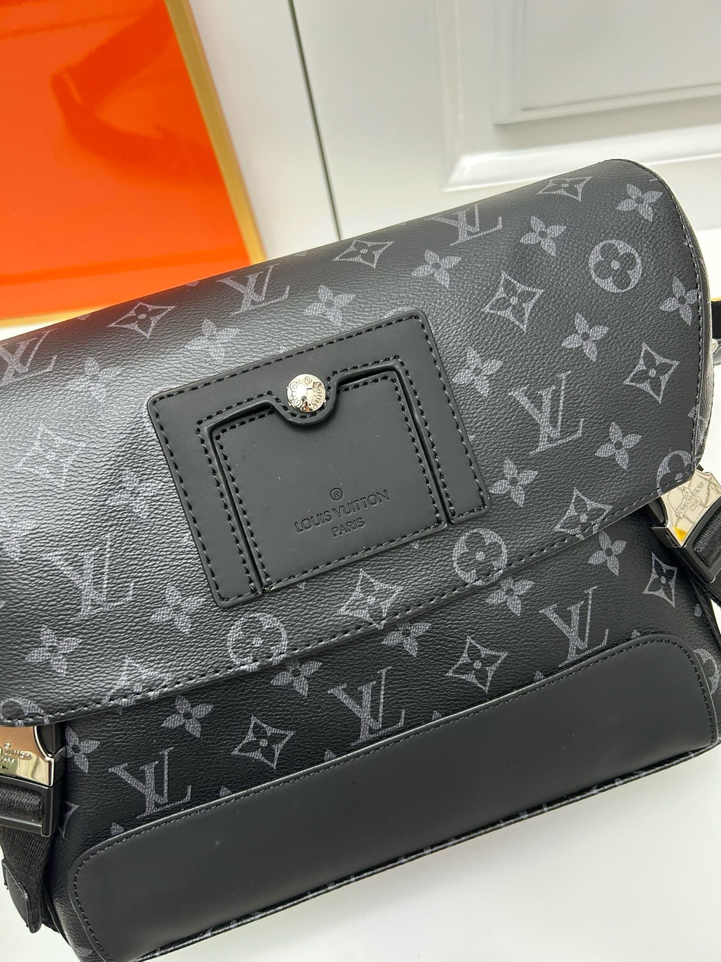 (Length x Height x Width) •Monogram Eclipse canvas•Textile lining•Epi leather textile trim•Silver coloured metallic pieces•Buckle fastener closure•Adjustable textile shoulder strap•External flat pocket•Internal zipped pocket•Internal three flat pockets
