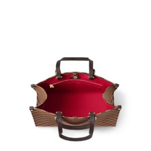 The classic OnTheGo MM handbag is reimagined for the season in Damier Ebene canvas, trimmed with smooth cowhide leather. Accented with gold-toned hardware, it can be hand-carried by the top handles, or styled as a shoulder bag thanks to the longer handles. The sophisticated design is fitted with one interior pocket, and is generously sized to store a laptop as well as other daily essentials.