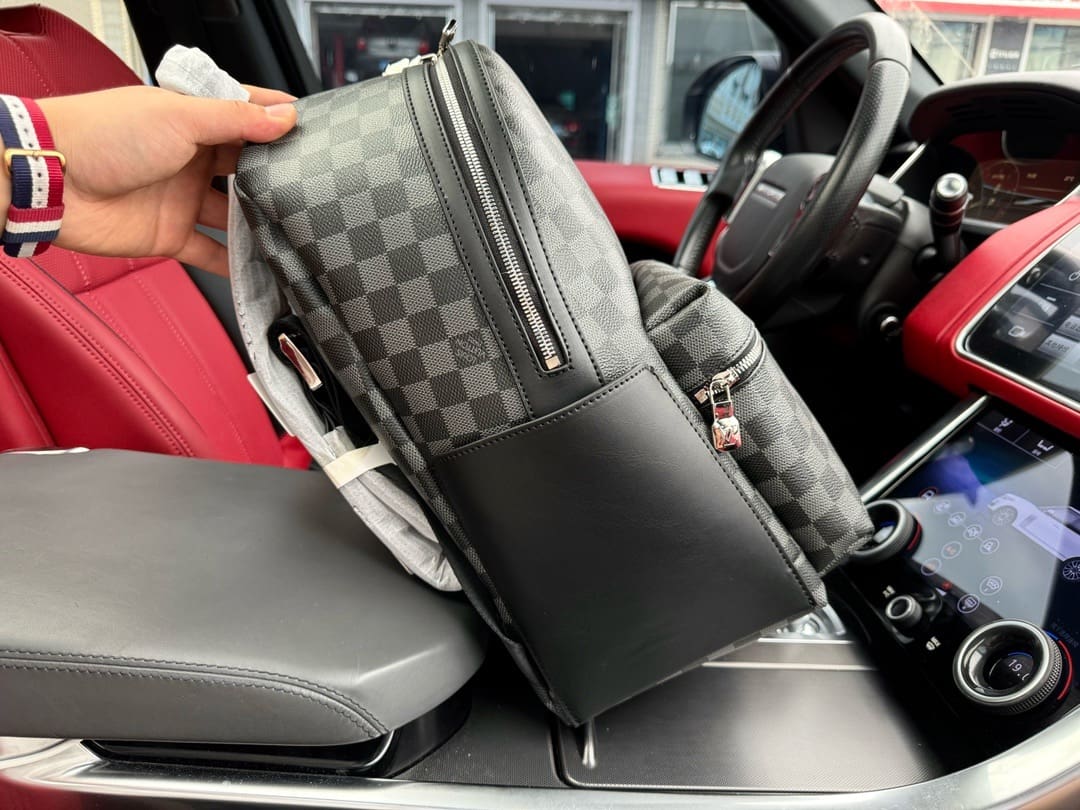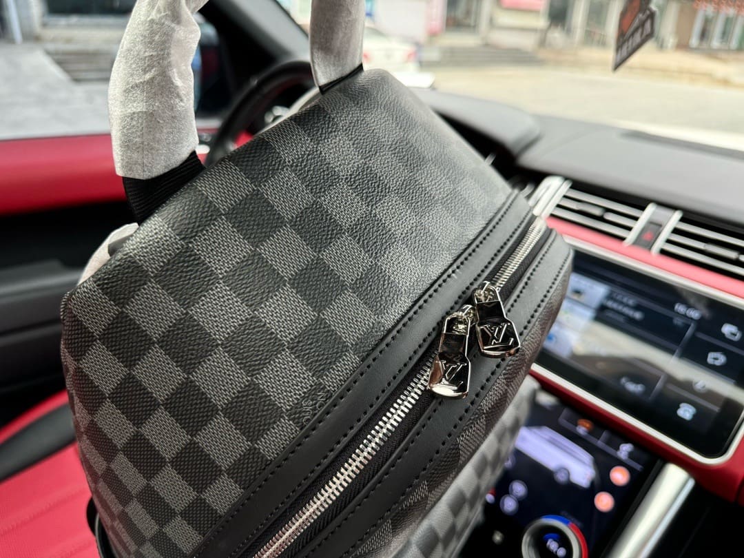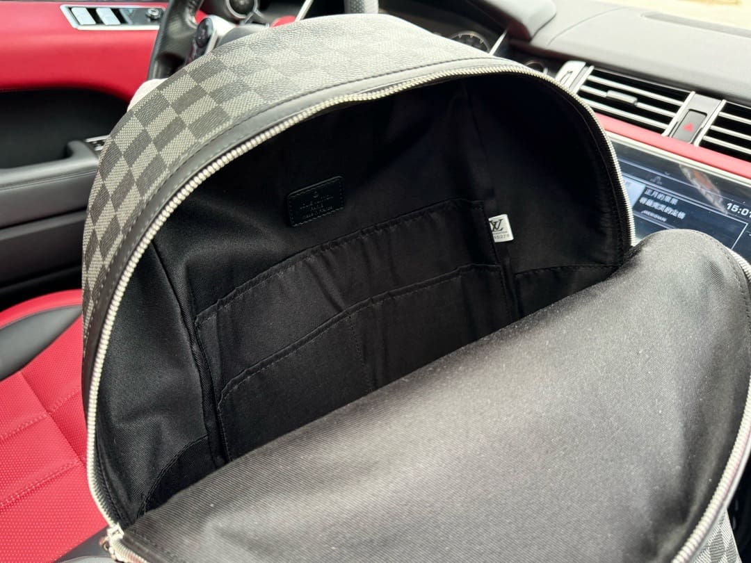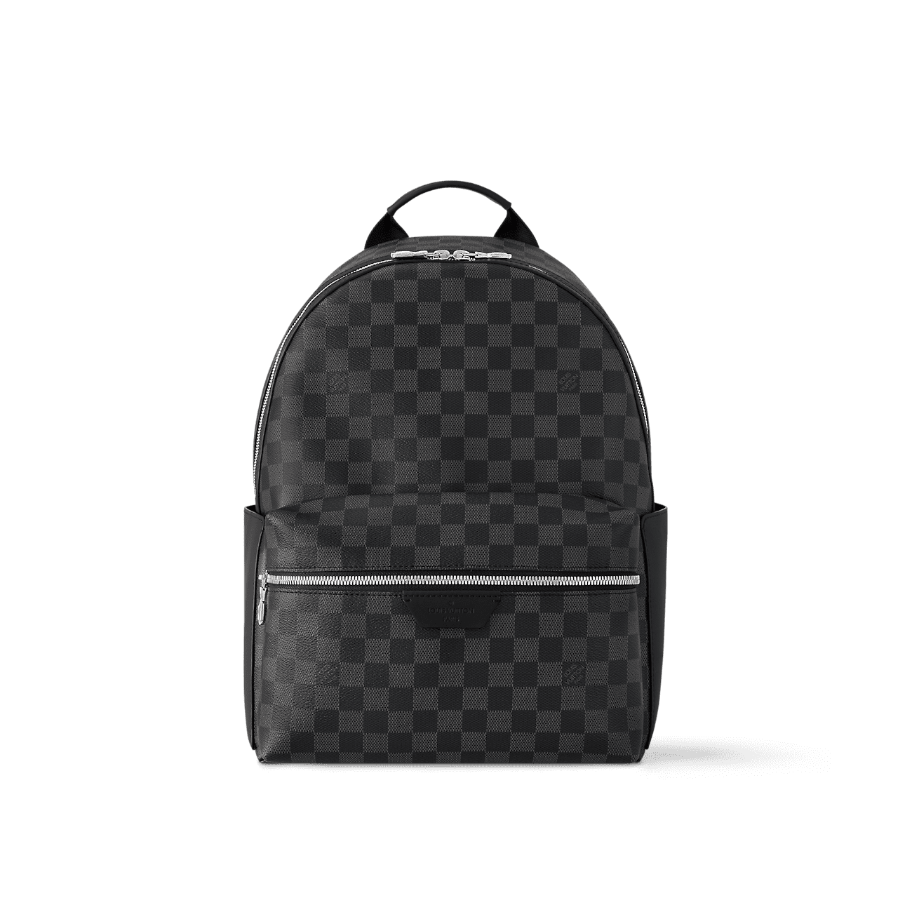 With its modern rounded shape and numerous interior and exterior pockets, the Discovery Backpack PM in Damier Graphite canvas is a great everyday bag. The two outside pockets in cowhide leather give quick access to essentials while crafted details like Louis Vuitton-engraved zip pulls bring a luxurious feel.