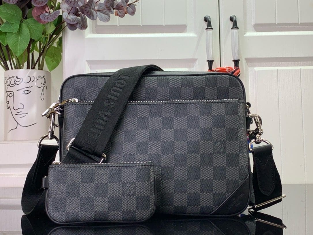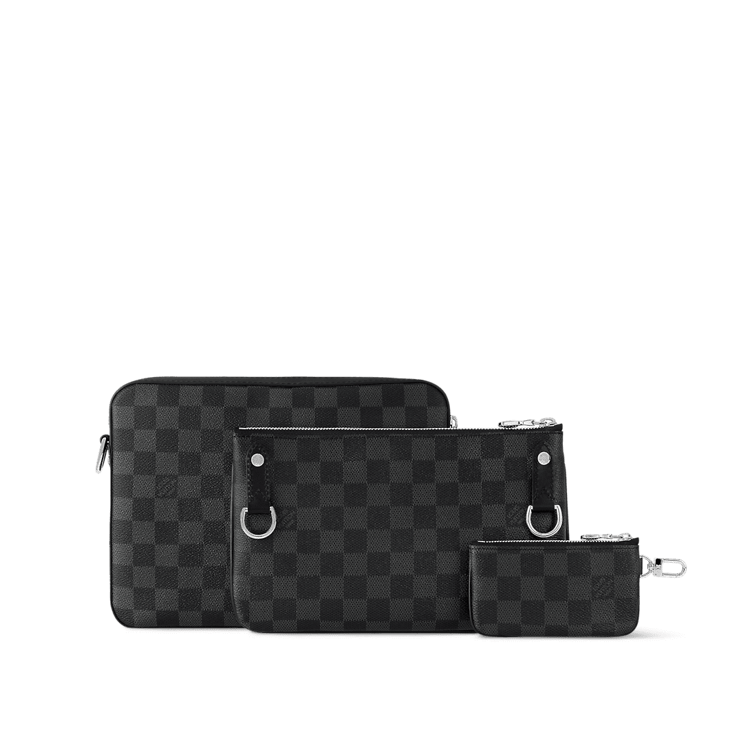 Louis Vuitton’s classic Damier Graphite canvas gives this new version of the Trio Messenger a timeless signature. The main pouch is supplemented by a detachable zipped pocket plus a separate coin purse that fits onto the strap, perfect for carrying change and contactless payment cards. An elegant everyday bag that combines modern functionality with a distinctive heritage look.