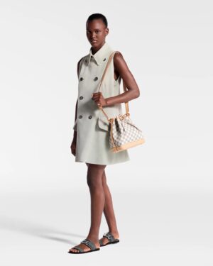 The Noé BB bucket bag harks back to a design from 1932. A Champagne producer asked Gaston-Louis Vuitton to develop a sturdy, stylish bag in which he could transport five bottles of bubbly. This charming version in body-friendly Damier Azur canvas retains key features of the original – the iconic shape and drawstring closure – but is made for modern life. The leather strap adjusts for comfortable shoulder or cross-body wear.