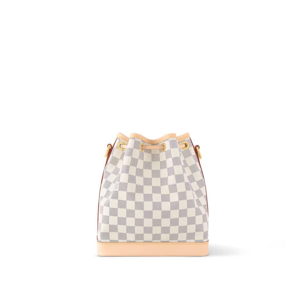 The Noé BB bucket bag harks back to a design from 1932. A Champagne producer asked Gaston-Louis Vuitton to develop a sturdy, stylish bag in which he could transport five bottles of bubbly. This charming version in body-friendly Damier Azur canvas retains key features of the original – the iconic shape and drawstring closure – but is made for modern life. The leather strap adjusts for comfortable shoulder or cross-body wear.