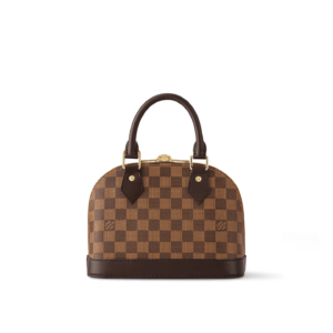 The Alma BB handbag traces its pedigree to the Art Deco original, introduced in 1934. Signature details impart a timeless elegance to this model made from graphic Damier Ebene canvas: note the golden padlock and keys, twin Toron handles and chic leather key bell. Equipped with a removable and adjustable strap, this charming small bag is perfect for cross-body wear.