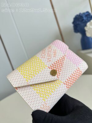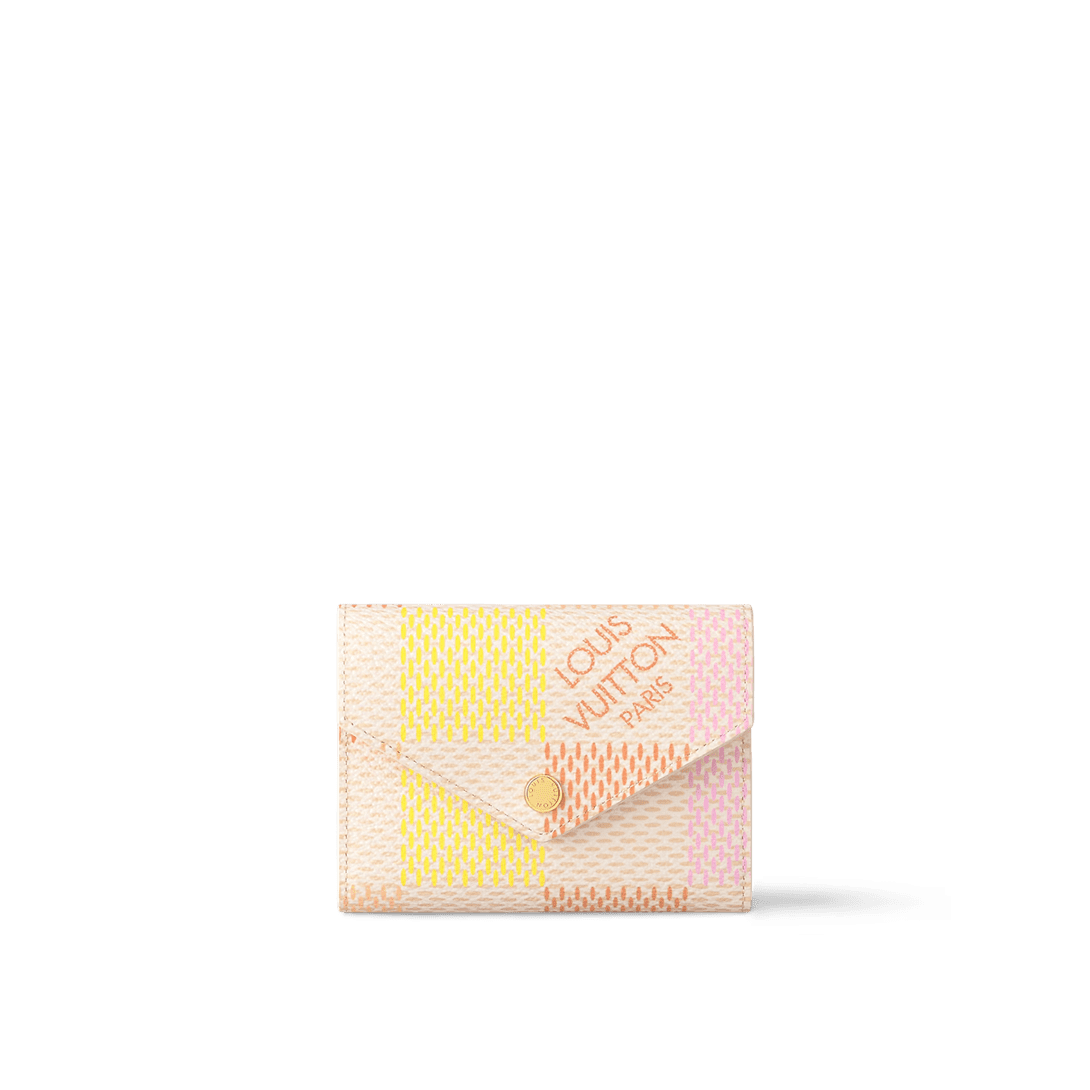 For the Damierlicious special edition, the Victorine wallet comes in Damier canvas, which is revisited in luscious pastel shades. It brings a fresh, feminine touch to this tiny wallet, whose envelope-style flap is secured with an engraved, gold-tone press-stud. Inside, there are pockets for bills and coins, and six card slots.