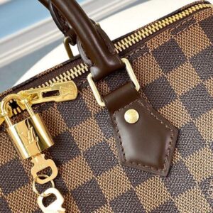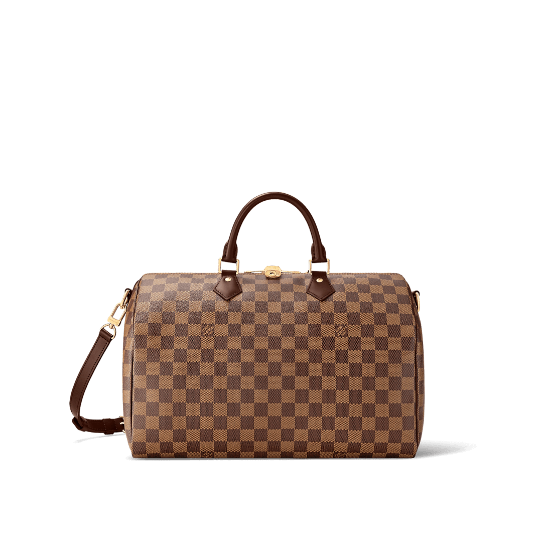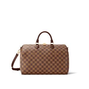 A timeless handbag that is always on-trend, the Speedy Bandoulière 35 in Damier Ebene canvas holds all the essentials for busy lifestyles. Originally created for travelers in the 1930s – the name refers to the era’s rapid transit – every feature of the Speedy’s design is iconic, from its unmistakable shape to the rolled leather handles, engraved padlock and detachable strap.