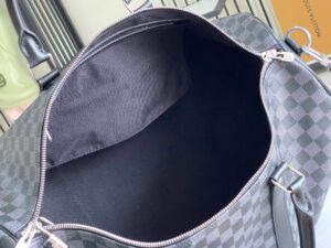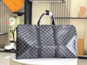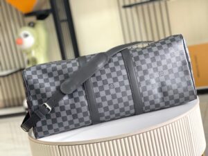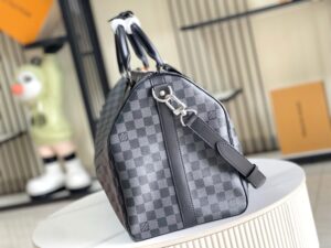 This urban travel bag in a revisited classic, Damier Graphite canvas, is not only stylish but also resistant and light. Hand held with a removable shoulder strap makes it extremely practical to use.