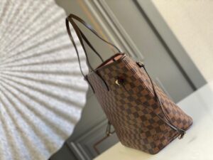 Legendary Neverfull: always exactly what you need it to be. Capacious but not bulky, structured yet supple, at home on the town or in the country. Cinch the side laces, and voila! it’s a sleek city bag. Loosen them and you have a chic, practical tote. The slim leather handles fit over the shoulder or on the arm. Shown here in Damier Ebene canvas.