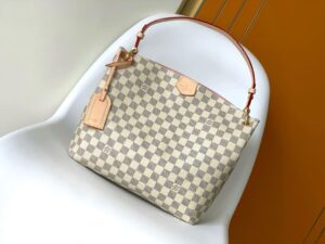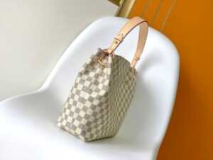 The Graceful PM hobo in fresh Damier Azur canvas is a lightweight, roomy bag to carry every day. Natural cowhide leather detailing and golden hardware add a refined touch. The body-friendly design combines with a supple, flat handle for stylish and comfortable over-the-shoulder wear. The magnetic closure and zipped inside pocket keep belongings secure.