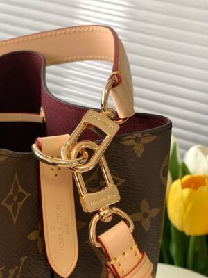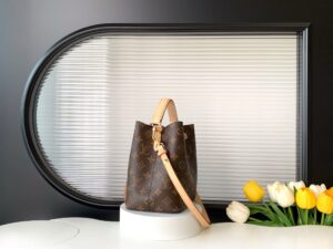 The NéoNoé BB in Monogram canvas with natural leather trim is a smaller interpretation of the House’s iconic NéoNoé bucket bag. Spacious enough to hold essentials such as keys, Airpods, and an iPhone, it features a leather drawstring to close the bag and keep belongings secure. A removable handle and detachable, adjustable strap offer multiple carry options.