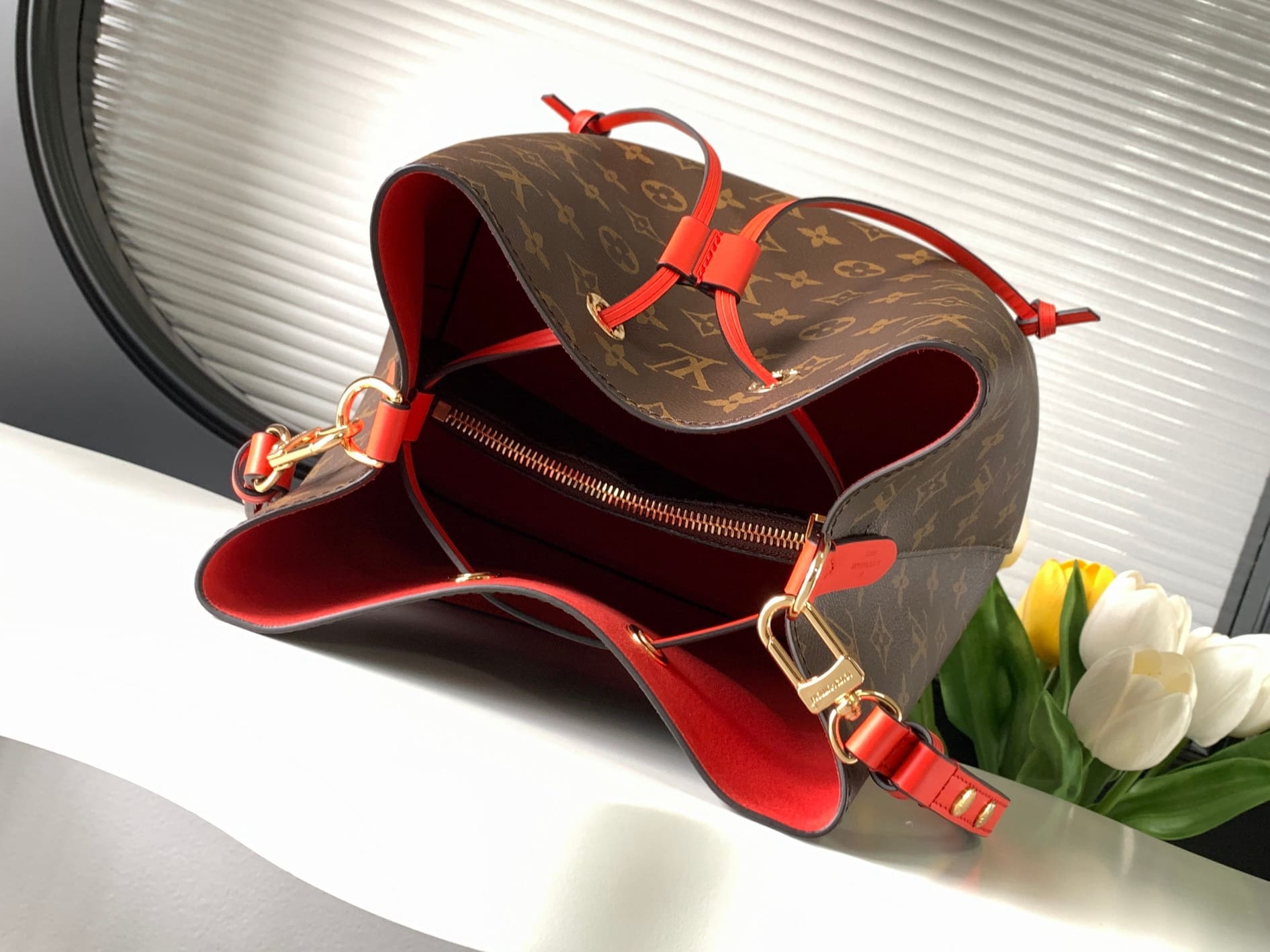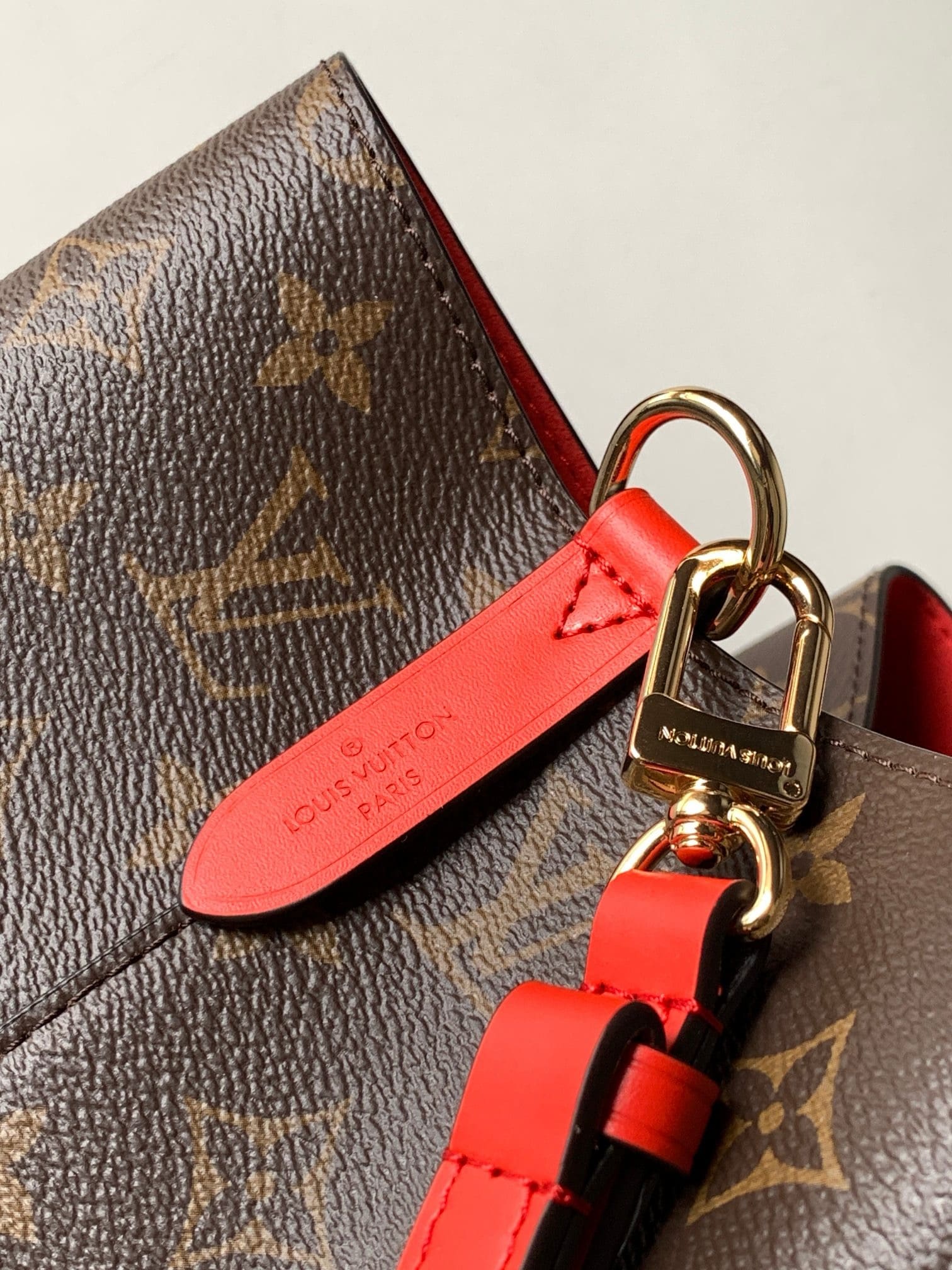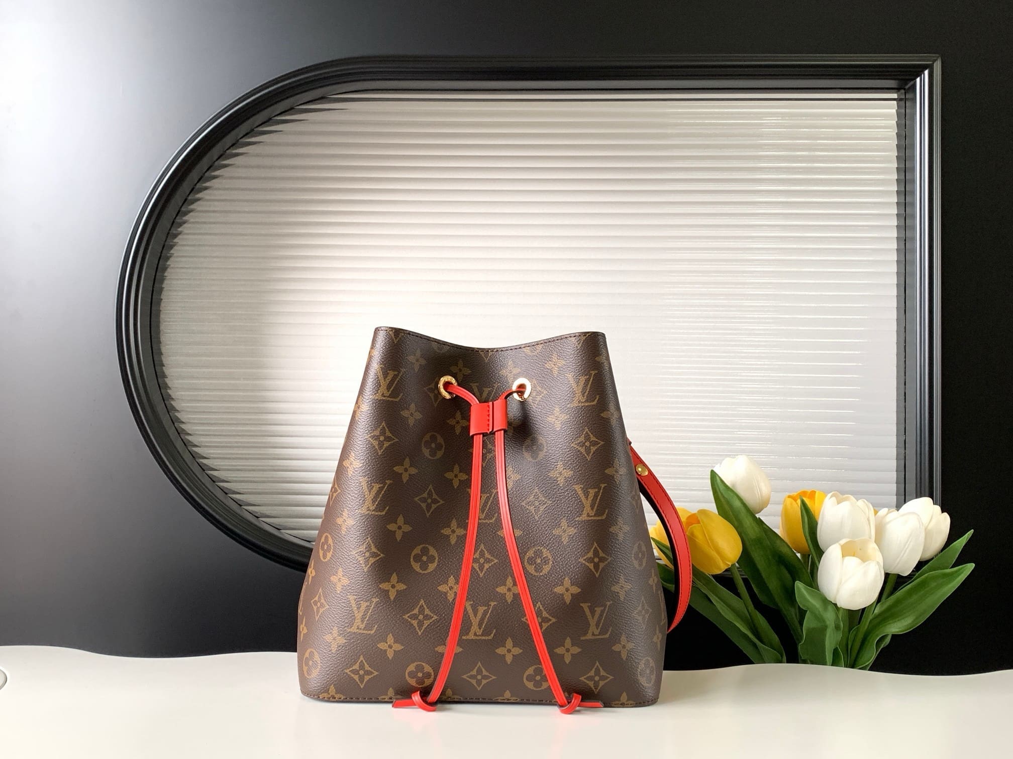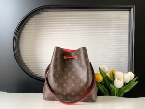 A true House icon, the NéoNoé bucket bag revisits a 1932 design by Gaston-Louis Vuitton. The original was created to transport bottles of Champagne in style; this modern version in Monogram canvas features a sleek shape, colorful leather trim and a matching bonded lining. The adjustable smart strap can be slung over the shoulder or lengthened for a trendy cross-body carry.