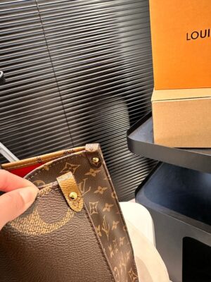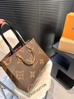 The name says it all: OnTheGo MM takes care of business or shopping, with plenty of room for a busy woman’s essentials. With Giant Monogram canvas on one side and Monogram Reverse on the other, it is virtually two bags in one. Twin Toron top handles and two shoulder straps offer several different carry styles, for extra versatility.