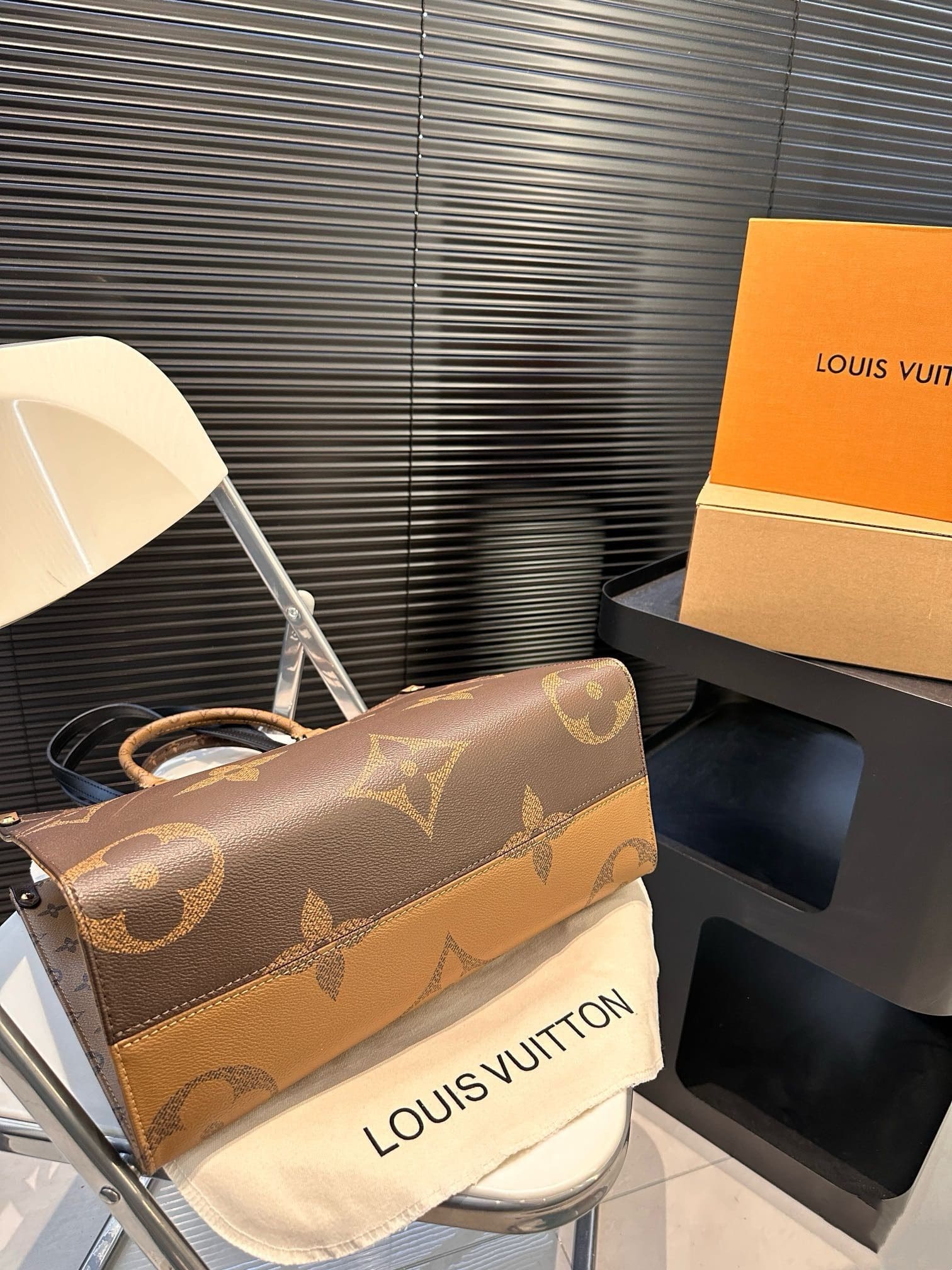 The name says it all: OnTheGo MM takes care of business or shopping, with plenty of room for a busy woman’s essentials. With Giant Monogram canvas on one side and Monogram Reverse on the other, it is virtually two bags in one. Twin Toron top handles and two shoulder straps offer several different carry styles, for extra versatility.