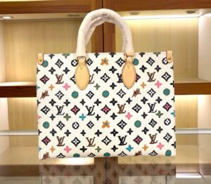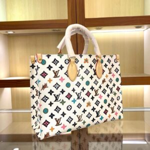 ONTHEGO Medium Handbag The Onthego medium handbag is decorated with classic Monogram canvas and Monogram Reverse canvas on both sides, showing different styles at will. Toron’s dual handles and shoulder strap allow for a variety of carrying options.