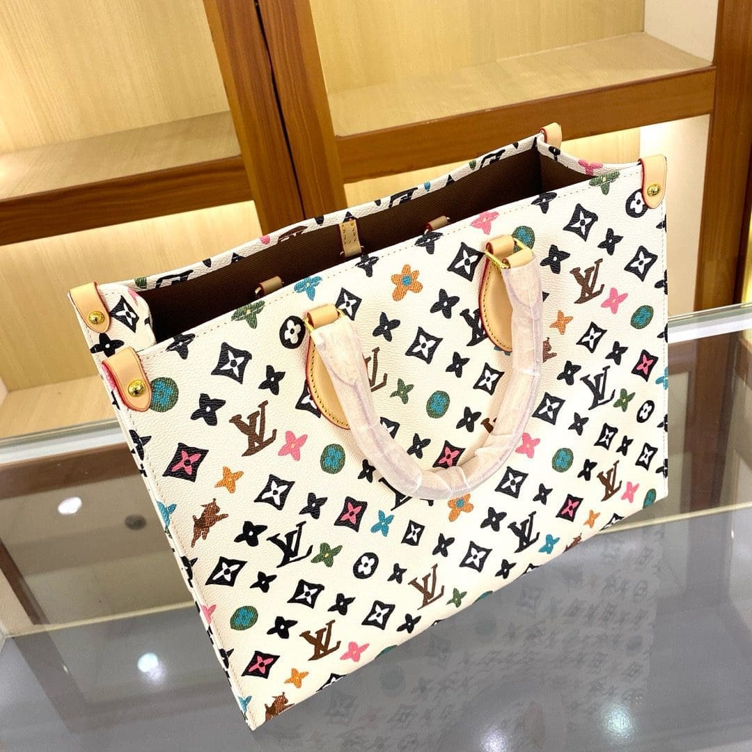 ONTHEGO Medium Handbag The Onthego medium handbag is decorated with classic Monogram canvas and Monogram Reverse canvas on both sides, showing different styles at will. Toron’s dual handles and shoulder strap allow for a variety of carrying options.