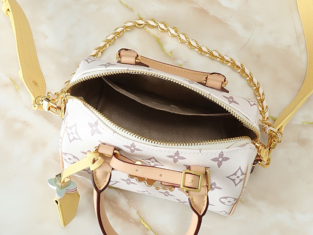 Louis Vuitton’s handbag family has a new and interesting addition: this Speedy 18 handbag is dyed with bright colors and can be flexibly matched with various shoulder straps and chains, as well as unique decorations, hairpins, storage bags, key bags or LV Link logos and other accessories, which express the personality of the LV&I series. The exquisite configuration hides ample space, and a variety of carrying methods make it easy to carry what you need for daily life.