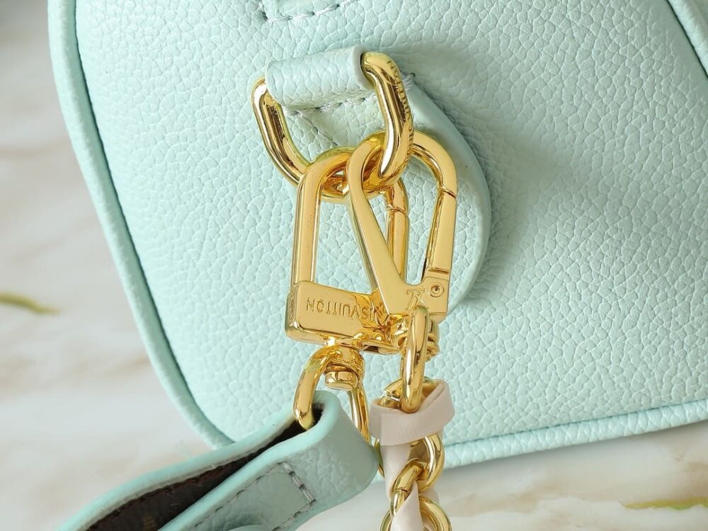 Louis Vuitton’s handbag family has a new and interesting addition: this Speedy 18 handbag is dyed with bright colors and can be flexibly matched with various shoulder straps and chains, as well as unique decorations, hairpins, storage bags, key bags or LV Link logos and other accessories, which express the personality of the LV&I series. The exquisite configuration hides ample space, and a variety of carrying methods make it easy to carry what you need for daily life.