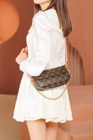 Inspired by the Sac Recoleta handbag from the 2000’s, the on-trend Wallet On Chain Ivy bag is fashioned from Monogram canvas. The removable gold-color chain allows short-shoulder carry while the adjustable and detachable strap, in natural leather, enables cross-body and long-shoulder carry. Three card slots and a zipped inside pocket make it perfect for everyday essentials.