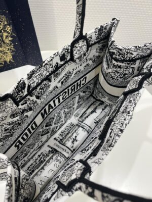 Introduced by Maria Grazia Chiuri, Creative Director of Christian Dior, the Medium Dior Book Tote has become a staple of the Dior aesthetic. Designed to hold all the daily essentials, the style is fully embroidered with the season’s signature white and black Plan de Paris motif, inspired by the House archives and centered around Dior’s historic address on Avenue Montaigne. Adorned with the Christian Dior Paris signature on the front, the medium tote exemplifies the House’s signature savoir-faire and may be carried by hand or worn over the shoulder.