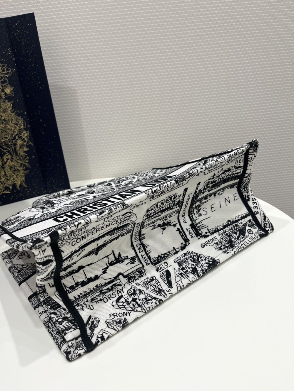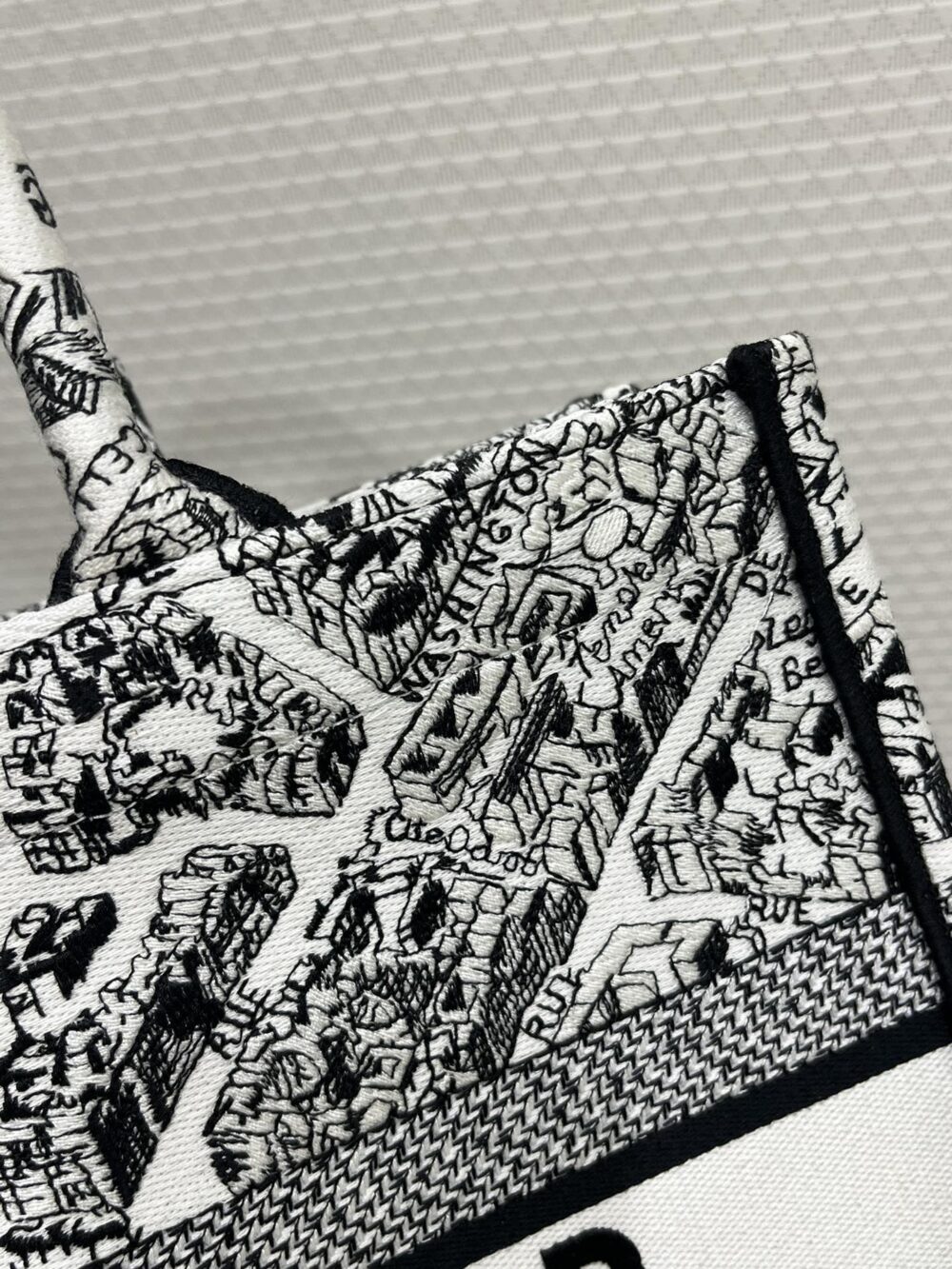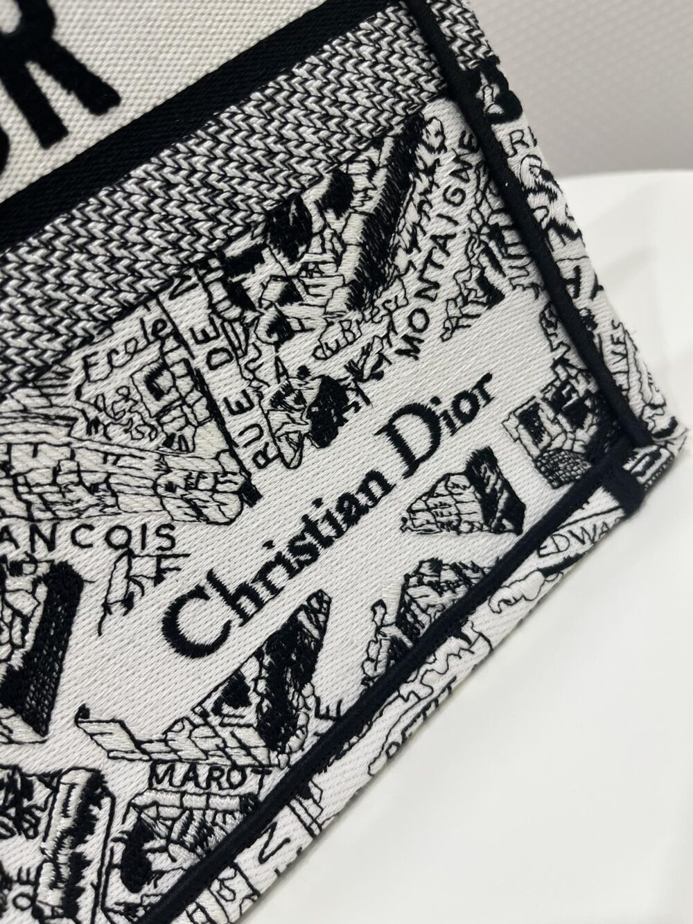 Introduced by Maria Grazia Chiuri, Creative Director of Christian Dior, the Medium Dior Book Tote has become a staple of the Dior aesthetic. Designed to hold all the daily essentials, the style is fully embroidered with the season’s signature white and black Plan de Paris motif, inspired by the House archives and centered around Dior’s historic address on Avenue Montaigne. Adorned with the Christian Dior Paris signature on the front, the medium tote exemplifies the House’s signature savoir-faire and may be carried by hand or worn over the shoulder.