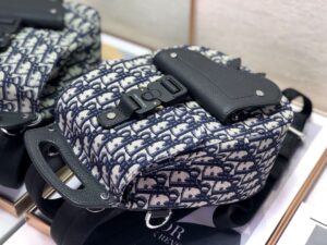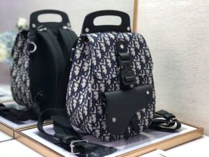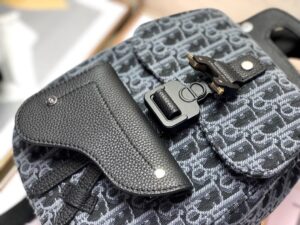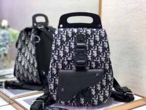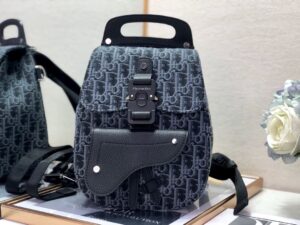 • The Mini Gallop Backpack offers a modern and original take on the iconic Saddle codes. Crafted in  Dior Oblique jacquard, it is embellished with black grained details and an aluminum buckle with the ‘Christian Dior’ signature. The main compartment can hold all the essentials, while the front Saddle pocket and side flap pockets offer easy access to keys or headphones. The practical backpack will lend the finishing touch to any outfit.