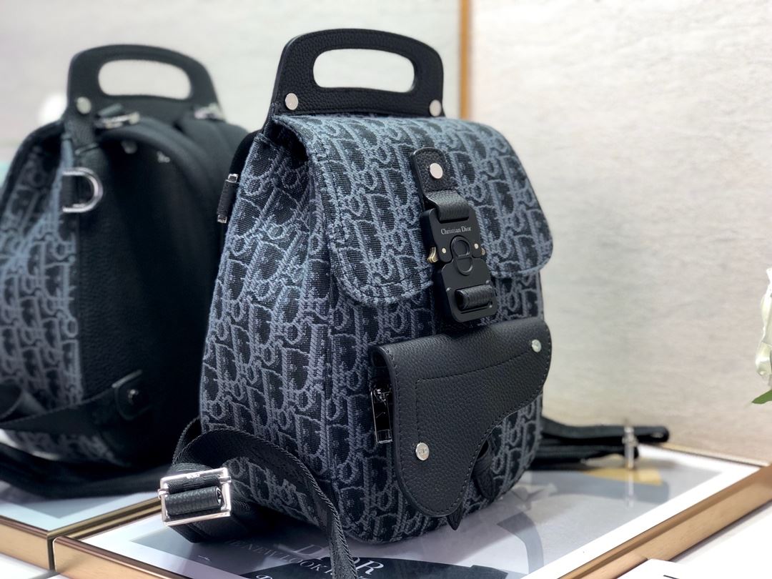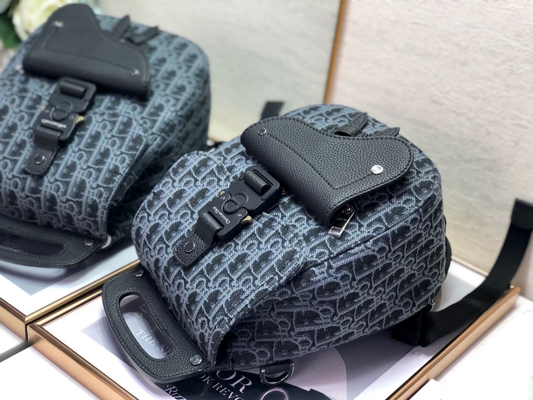 • The Mini Gallop Backpack offers a modern and original take on the iconic Saddle codes. Crafted in  Dior Oblique jacquard, it is embellished with black grained details and an aluminum buckle with the ‘Christian Dior’ signature. The main compartment can hold all the essentials, while the front Saddle pocket and side flap pockets offer easy access to keys or headphones. The practical backpack will lend the finishing touch to any outfit.