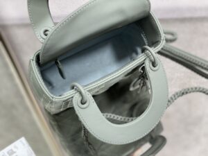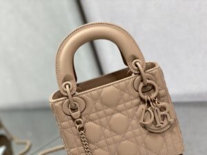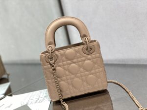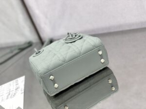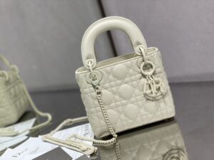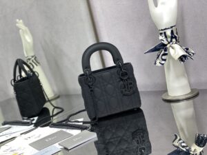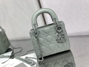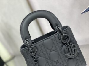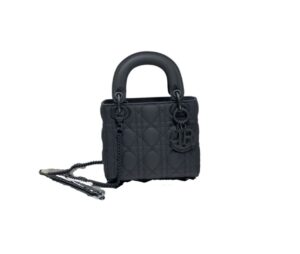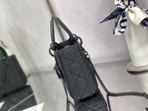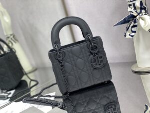 The Mini Lady Dior handbag epitomizes the House’s vision of elegance and beauty. Sleek and refined, the timeless yet relevant style is crafted in ultramatte with Cannage stitching, creating the instantly recognizable quilted texture. The tonal metal ‘D.I.O.R.’ charms further embellish and illuminate its silhouette. Featuring a removable chain shoulder strap, the miniature Lady Dior bag can be carried by hand, worn over the shoulder or crossbody as an ideal evening companion.