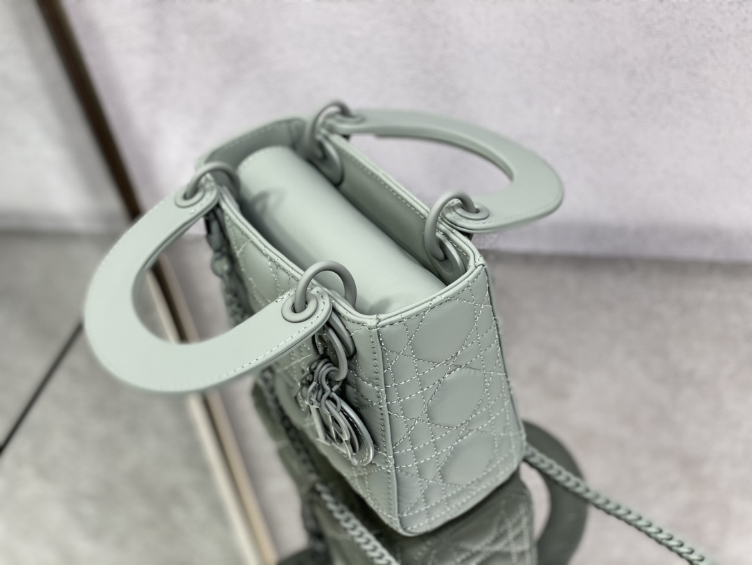 The Mini Lady Dior handbag epitomizes the House’s vision of elegance and beauty. Sleek and refined, the timeless yet relevant style is crafted in ultramatte with Cannage stitching, creating the instantly recognizable quilted texture. The tonal metal ‘D.I.O.R.’ charms further embellish and illuminate its silhouette. Featuring a removable chain shoulder strap, the miniature Lady Dior bag can be carried by hand, worn over the shoulder or crossbody as an ideal evening companion.