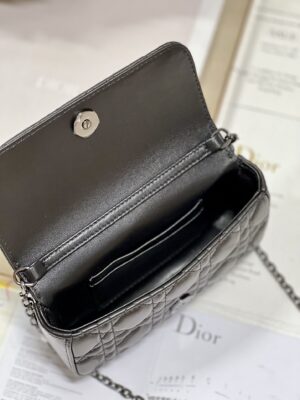 The Mini Miss Dior Bag elevates the Lady Dior line with an elegant and functional design, it features a flap enhanced by the D.I.O.R. charm. Equipped with compartments and card slots, the functional accessory holds all the essentials and is the ideal day and evening companion. A top handle completed by a removable chain punctuated with resin pearls allows the miniature bag to be carried by hand or worn crossbody.