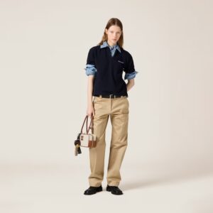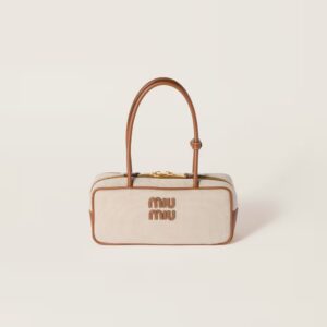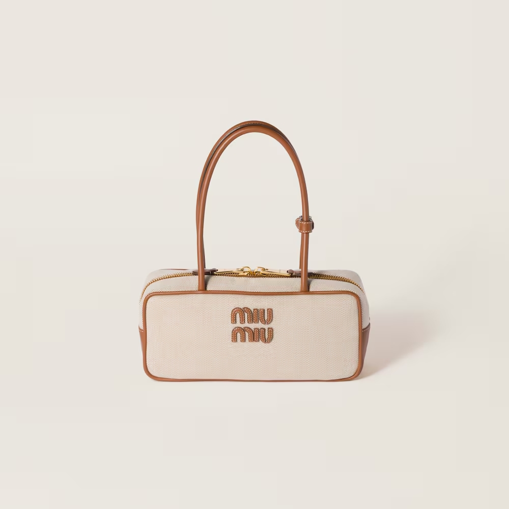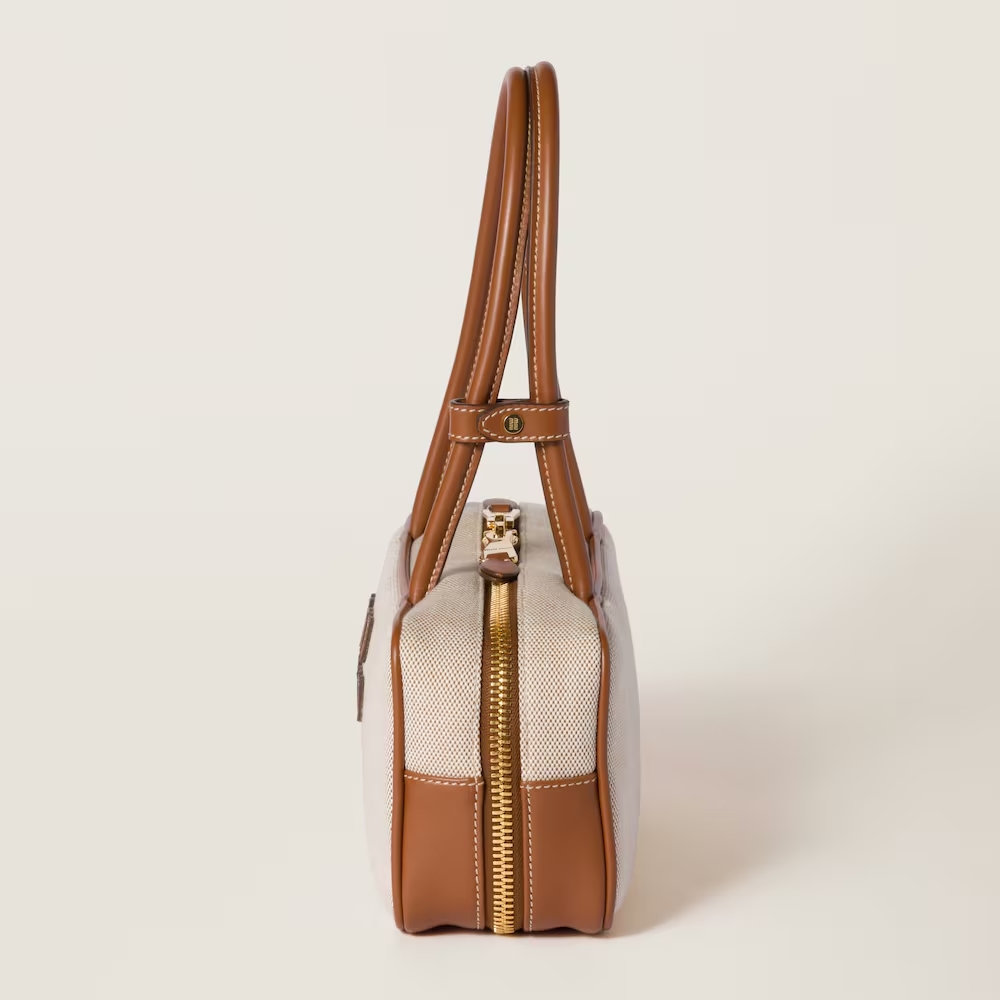 The neutral shades of canvas, enhanced by the leather trim and logo in a contrasting color, highlight the artisanal charm and dynamic silhouette of the iconic Beau bag.