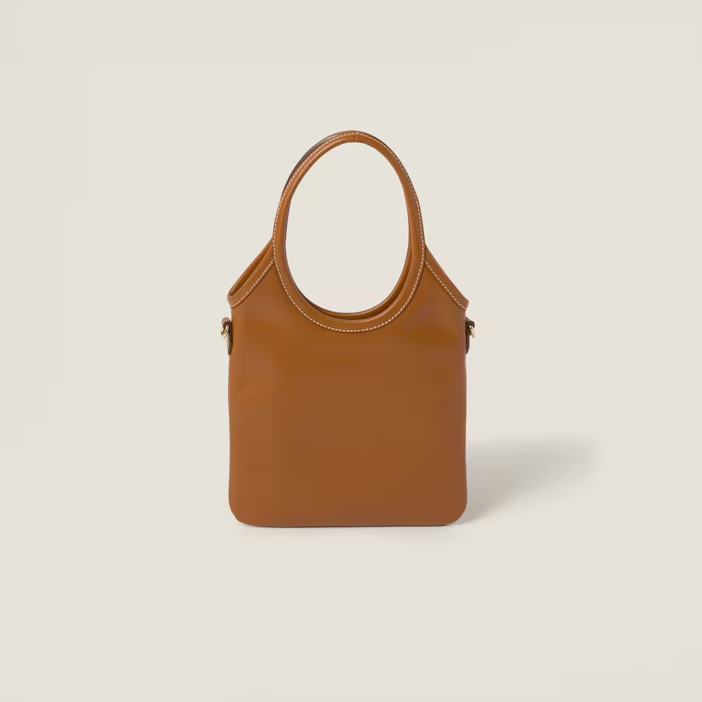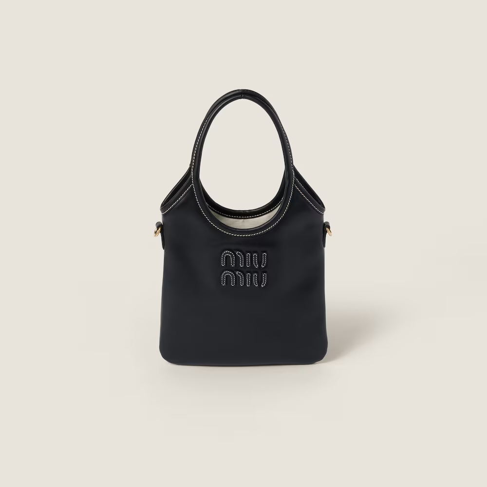 This Ivy leather bag enhances a classic style with metal details and contrast stitching. The tonal Miu Miu lettering logo gives the design an iconic and immediately recognizable note.