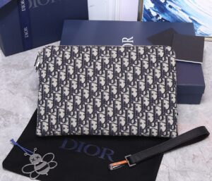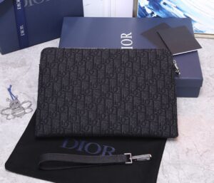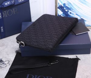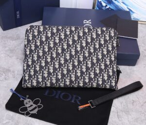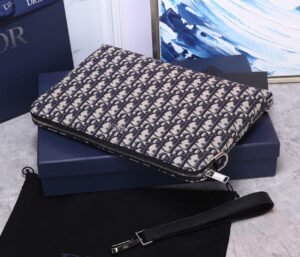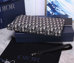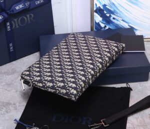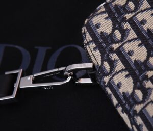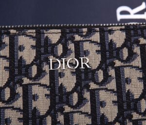 • The Oblique Jacquard Pouch showcases the Dior Oblique motif, first seen on House creations in 1967. Crafted inDior Oblique jacquard, it is embellished with a finish brass Dior signature on the front. Featuring a ruthenium-finish brass zipped closure, its smooth interior has three card slots as well as a phone compartment. The streamlined and spacious pouch is completed by a removable strap allowing it be carried by hand or slipped in a bag.