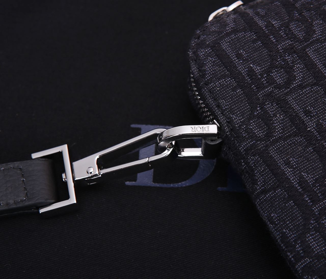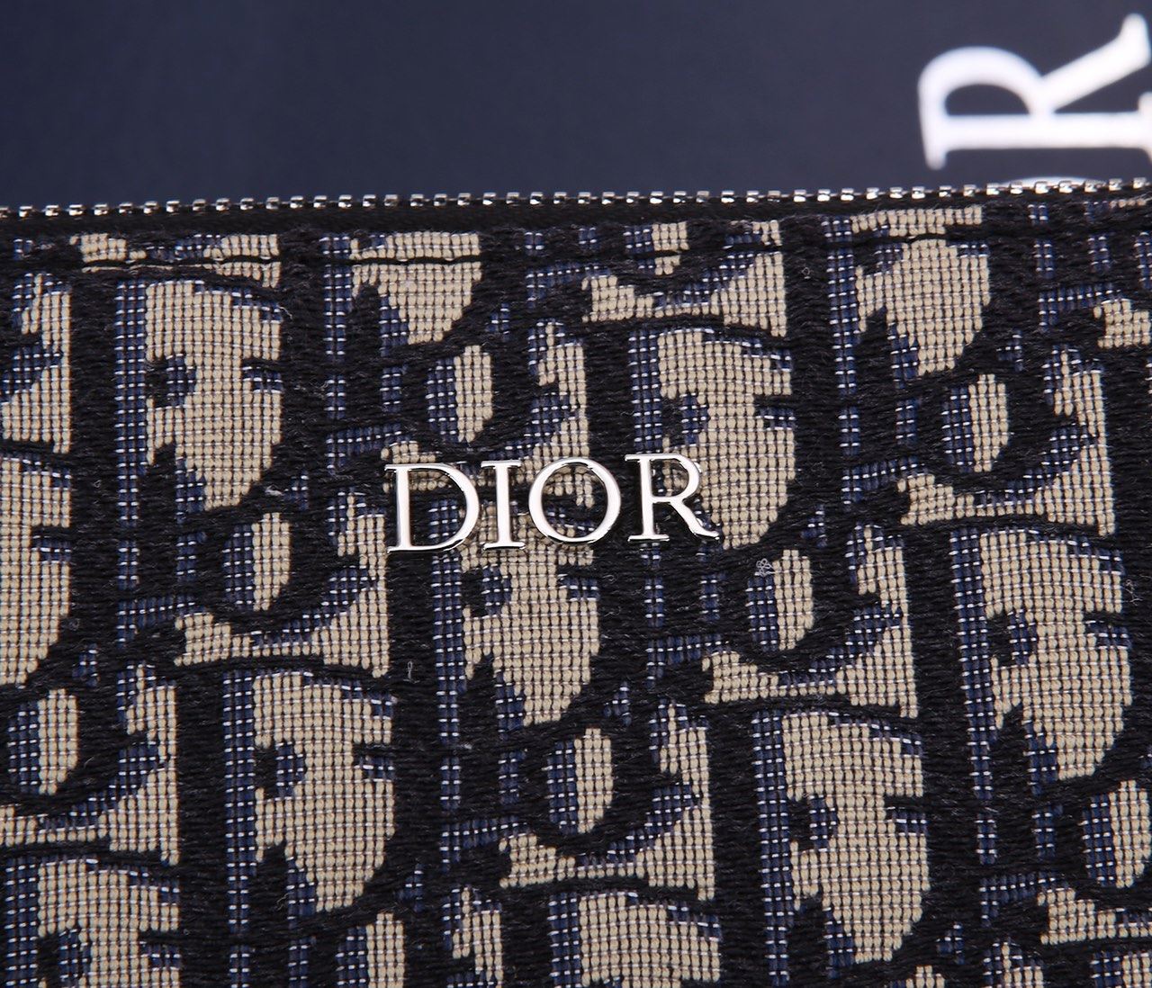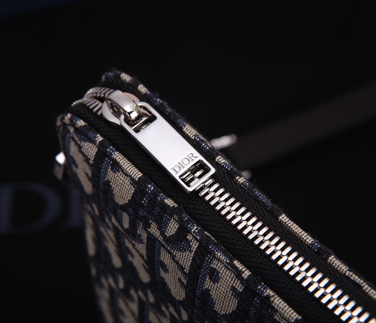 • The Oblique Jacquard Pouch showcases the Dior Oblique motif, first seen on House creations in 1967. Crafted inDior Oblique jacquard, it is embellished with a finish brass Dior signature on the front. Featuring a ruthenium-finish brass zipped closure, its smooth interior has three card slots as well as a phone compartment. The streamlined and spacious pouch is completed by a removable strap allowing it be carried by hand or slipped in a bag.
