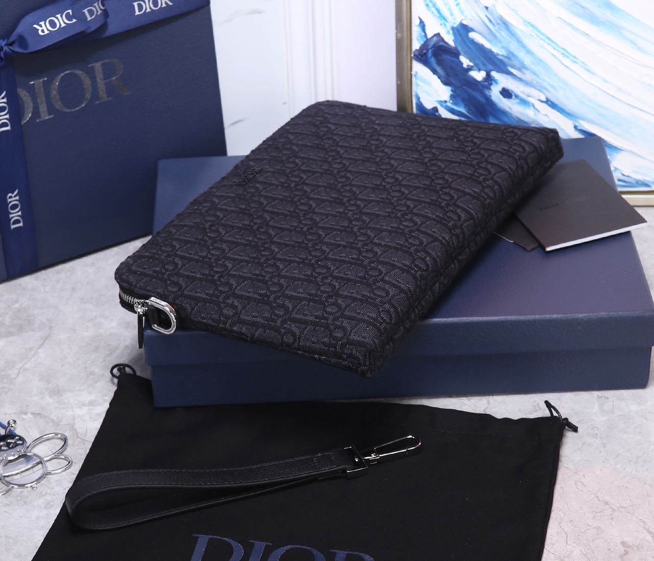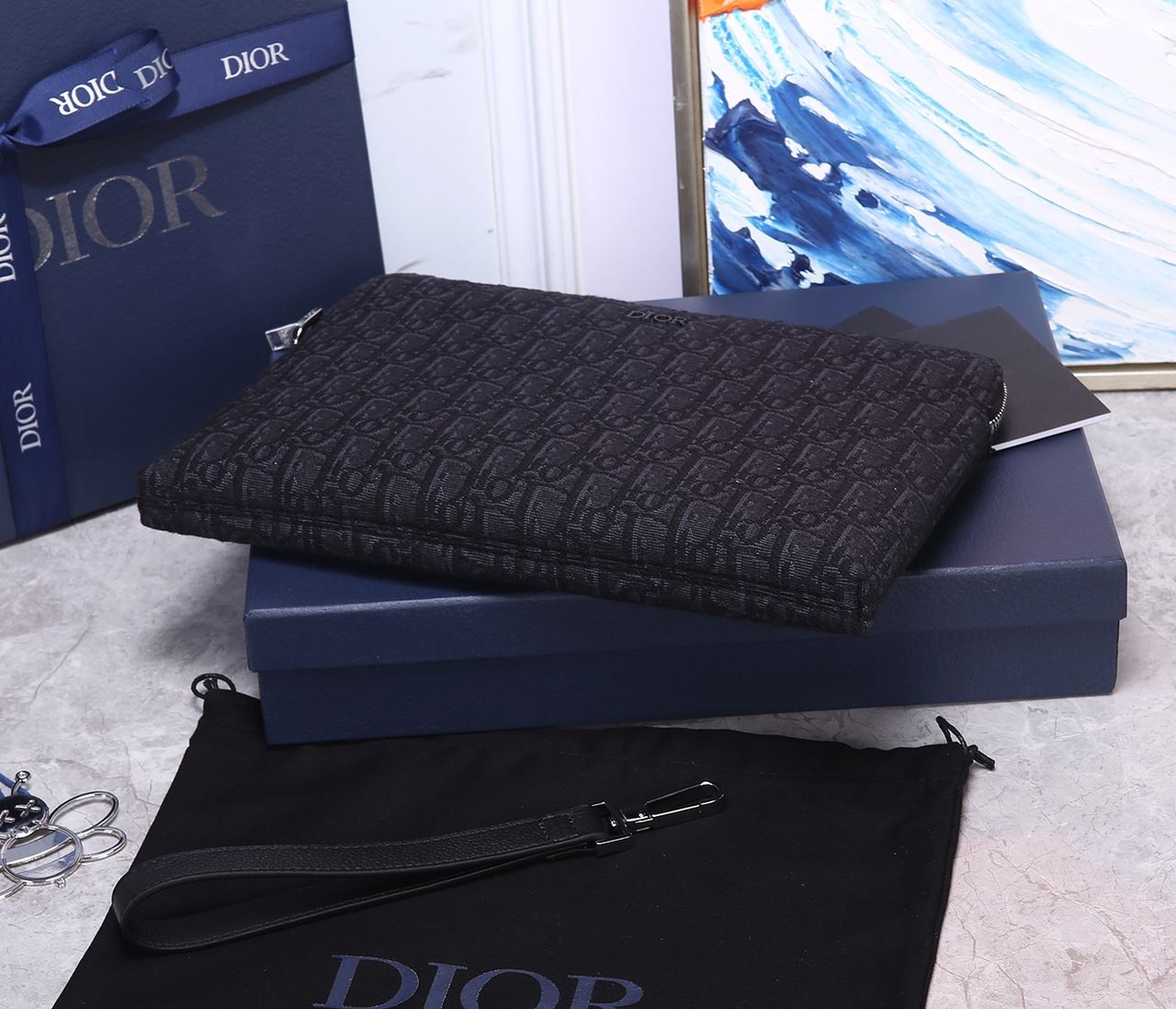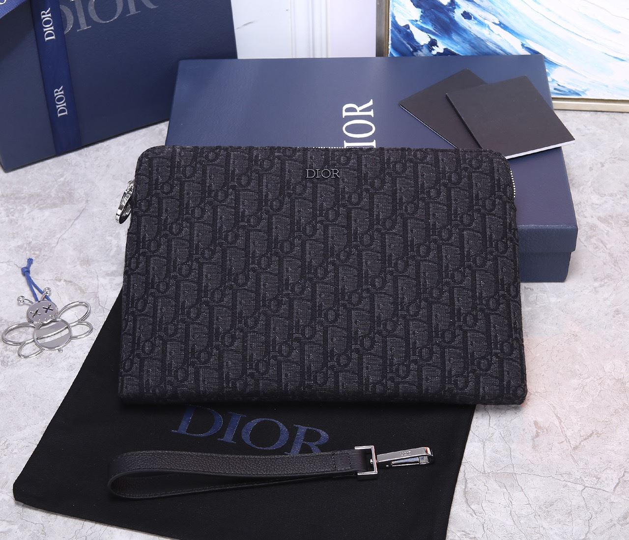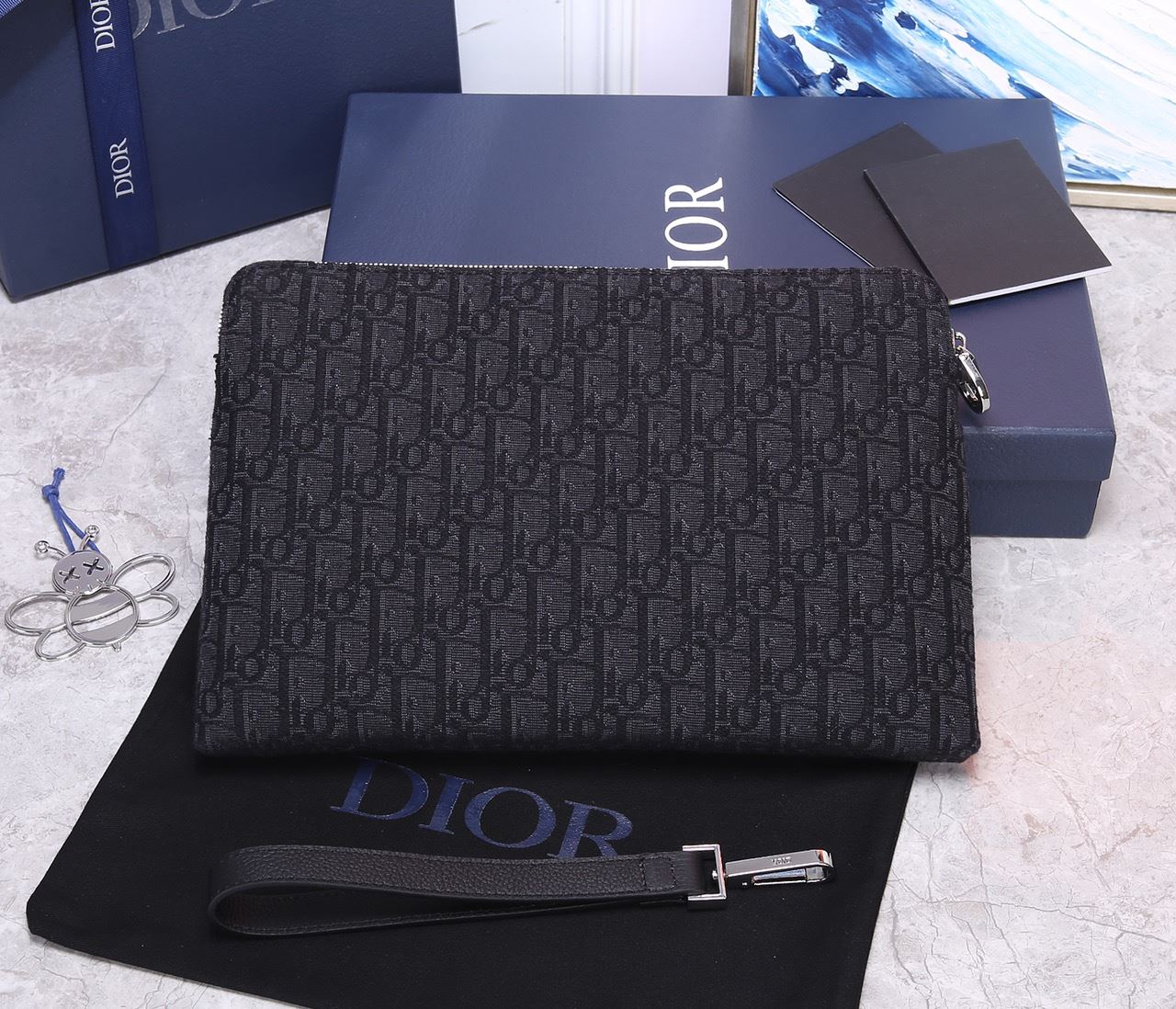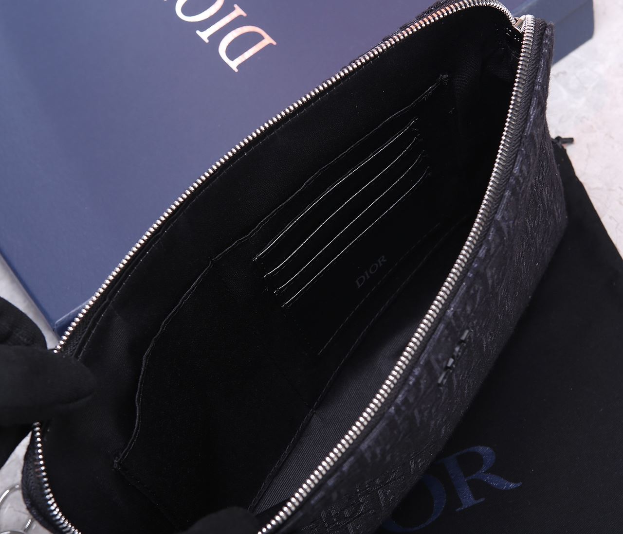 Christian Dior Oblique Jacquard Pouch Black/Beige- 2OBCA251YSE_H03E