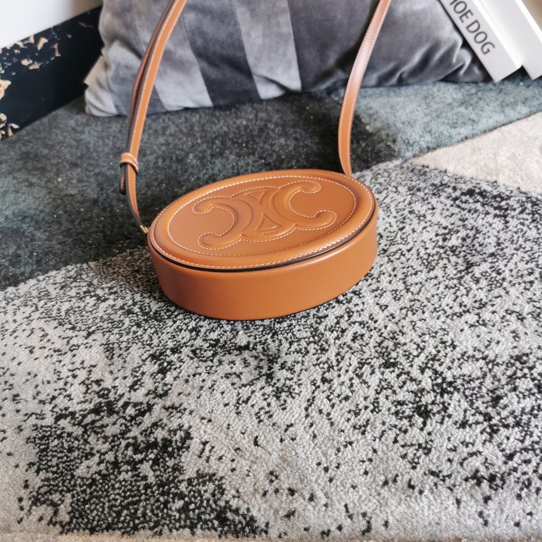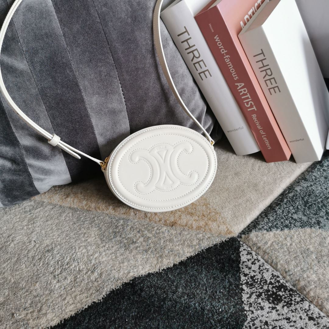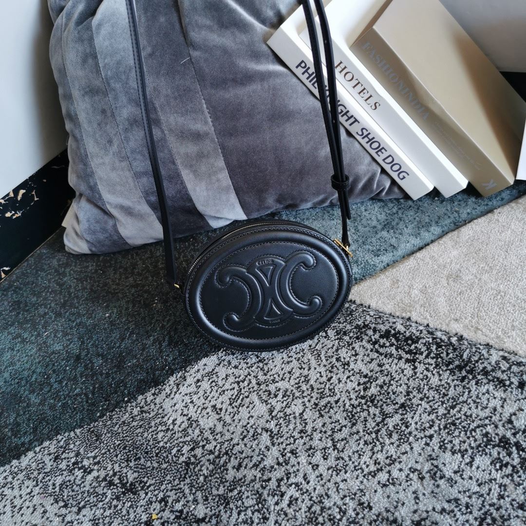 Oval Bag Cuir Triomphe In Smooth Black/White/Brown For Women‎ 8in/20cm 198603DXC.38NO
