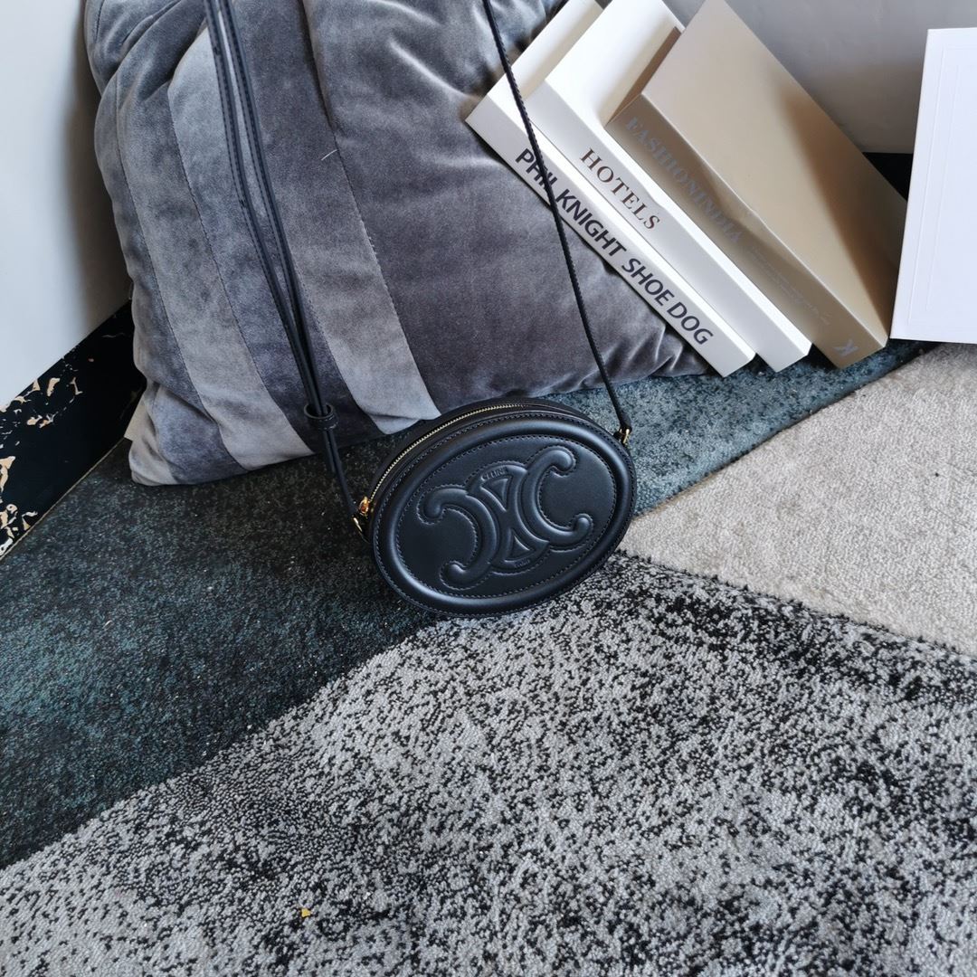 Celine Oval Bag Cuir Triomphe In Smooth Black/White/Brown – 198603DXC.38NO