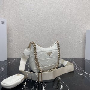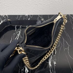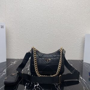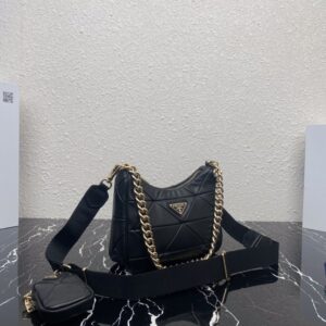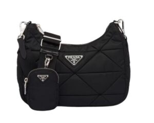Padded Hobo Bag with A triangle patchwork motif characterizes this padded hobo bag designed to also be worn as a shoulder bag thanks to the adjustable logo-print strap. Embellished on the front with the iconic metal triangle logo, the multifunctional accessory is completed with a detachable zipper pouch that hooks onto the shoulder strap.