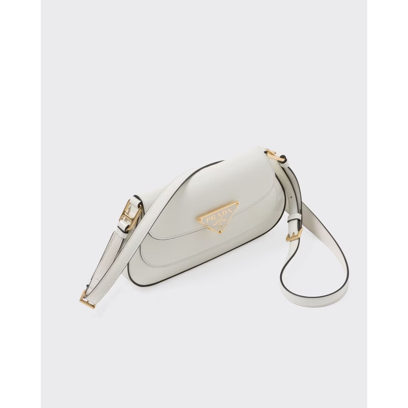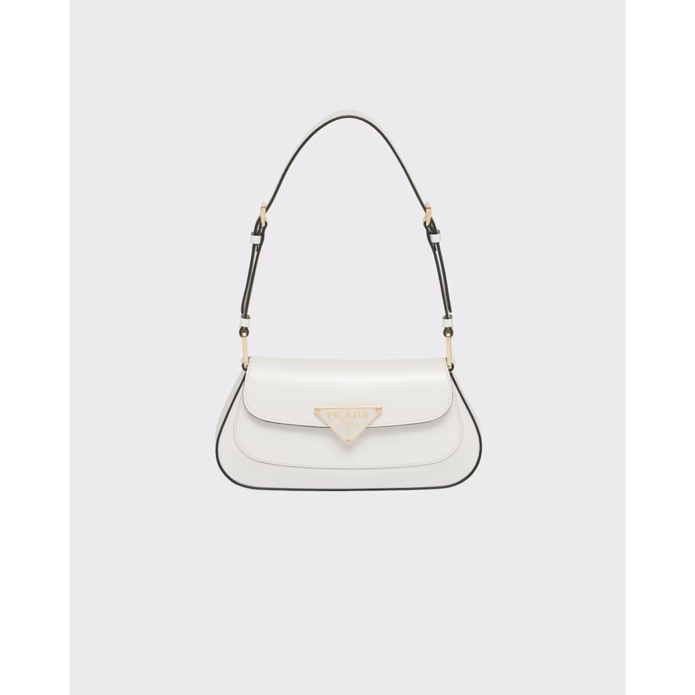 Dynamic, curved lines give this shoulder bag sophisticated and contemporary allure. The brushed leather with a modern finish enhances the versatile design which can be worn as a handbag or shoulder bag. Mixing refinement and functionality, the silhouette with flap is completed by the enameled metal logo applied on the clasp that gives the accessory an iconic and distinctive touch.