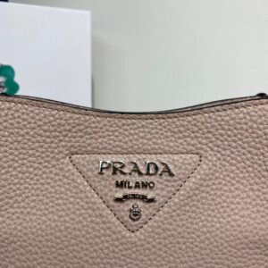 The sleek design of this mini shoulder bag is emphasized on the front by the metal triangle logo that adds an iconic note. The detachable logo-print woven tape shoulder strap emphasizes the contemporary character of the accessory.