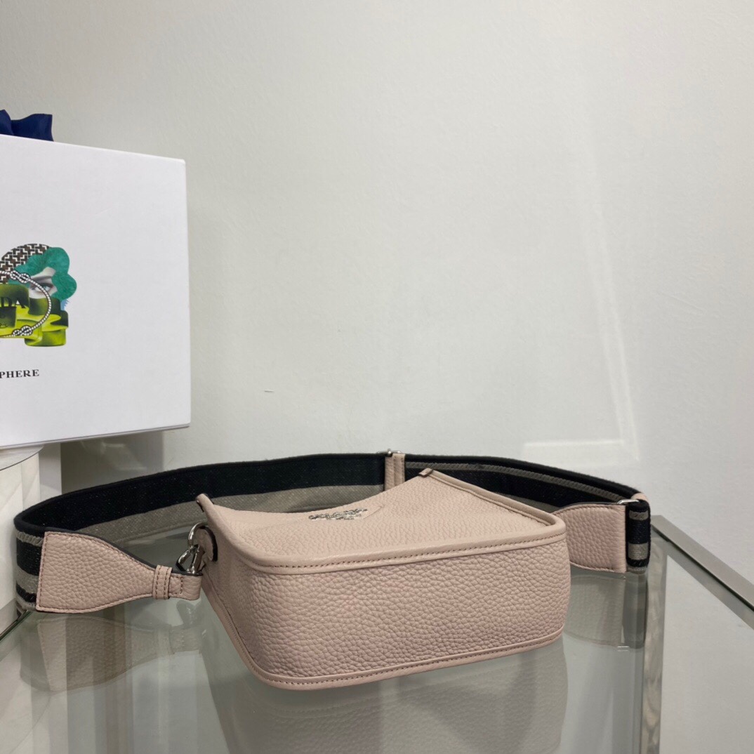The sleek design of this mini shoulder bag is emphasized on the front by the metal triangle logo that adds an iconic note. The detachable logo-print woven tape shoulder strap emphasizes the contemporary character of the accessory.